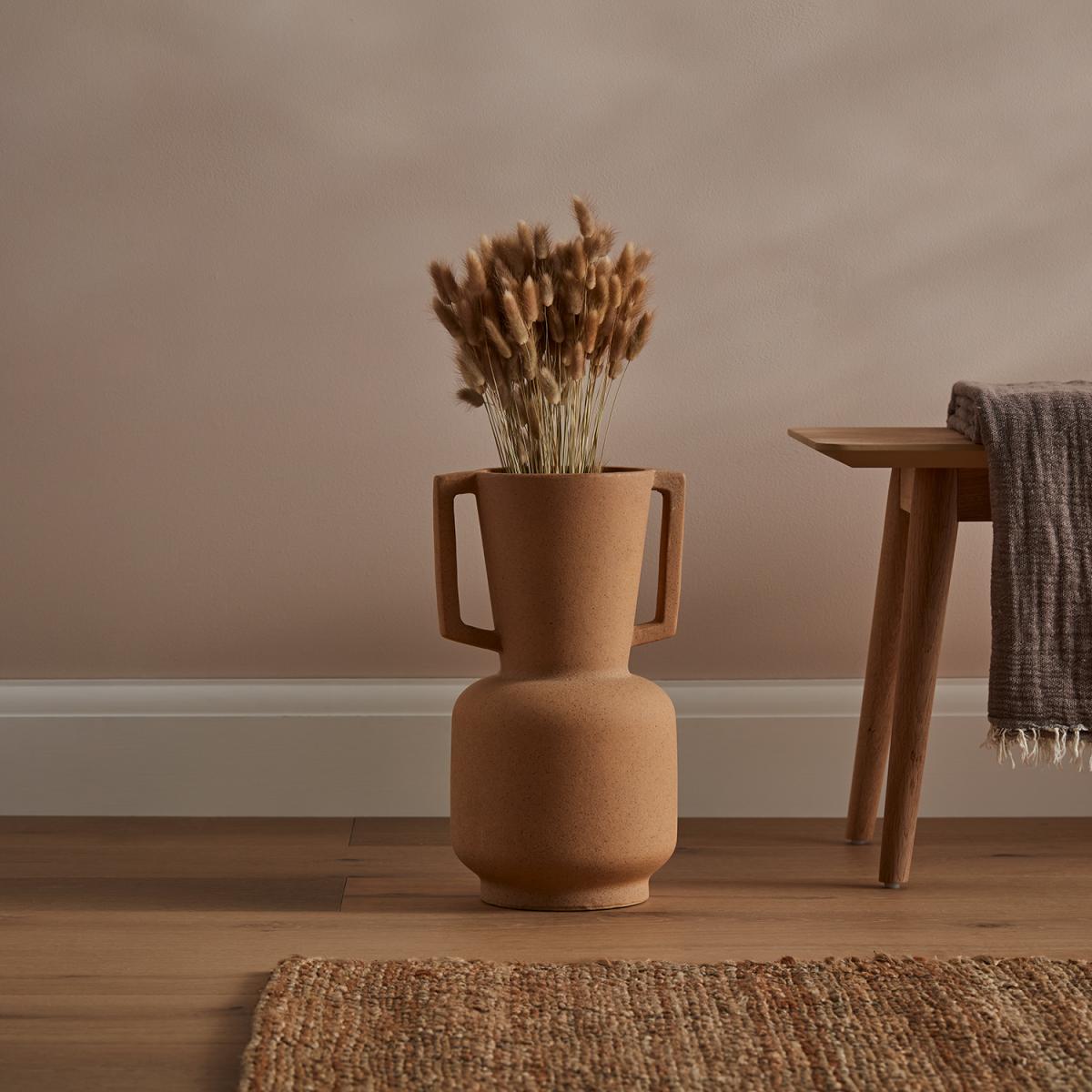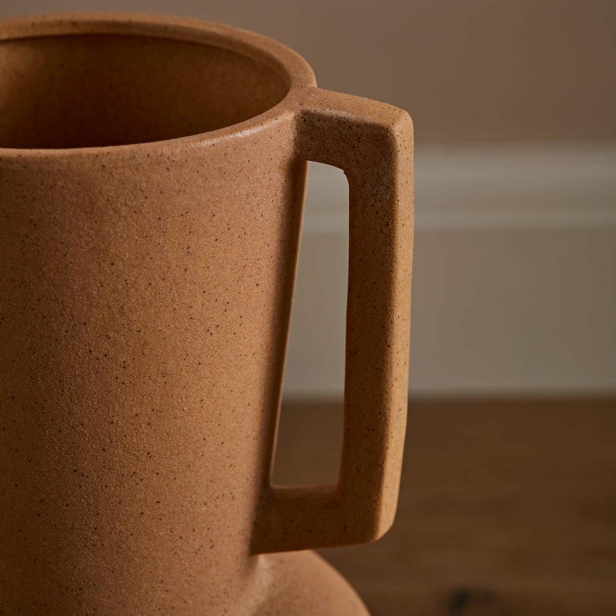 The urn-inspired Nene vase is a statement piece of home decor, with its sophisticated angles and groves that are beautifully accentuated by a textured sand-style finish. This vase with handles feels ever so premium and looks as good on its own as it does with pampas, dried flowers or freshly cut stems.
