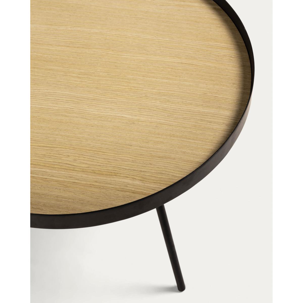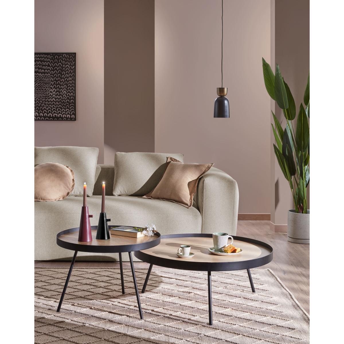I’m a fan of the Nenet table for its slim black frame and neat tray edge, which feels both modern and unfussy. It’s a great fit in Scandi-inspired or industrial schemes, where the contrast between the warm top and dark legs adds visual interest without overwhelming a space. Styling it is straightforward: keep the surface fairly clear - a small planter, a stack of books and a sleek lamp work well - and use the raised lip to keep items from sliding off. Its 60 cm diameter means it’s equally happy beside a sofa or paired in a cosy reading nook.