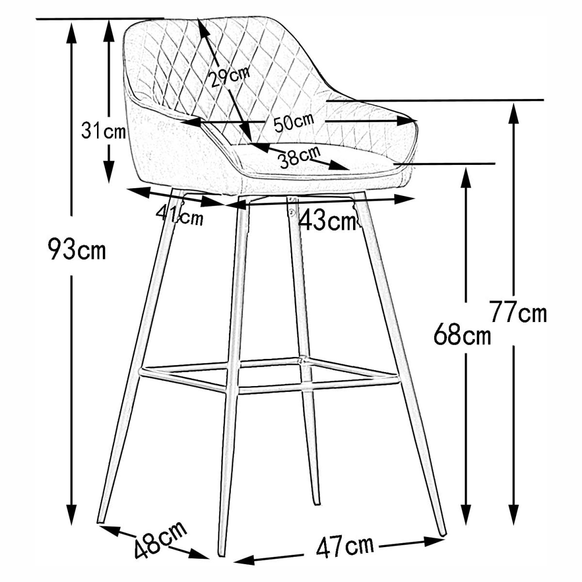 This gorgeous bar stool features a stunning diamond quilted design, complemented by the gentle sloped arms and finished in a stylish colour. Upholstered in high quality crushed velvet, amply padded with a generous backrest for support. The seat stands on sturdy black metal legs. Added features include a footrest, arm rests and a high back seat.
