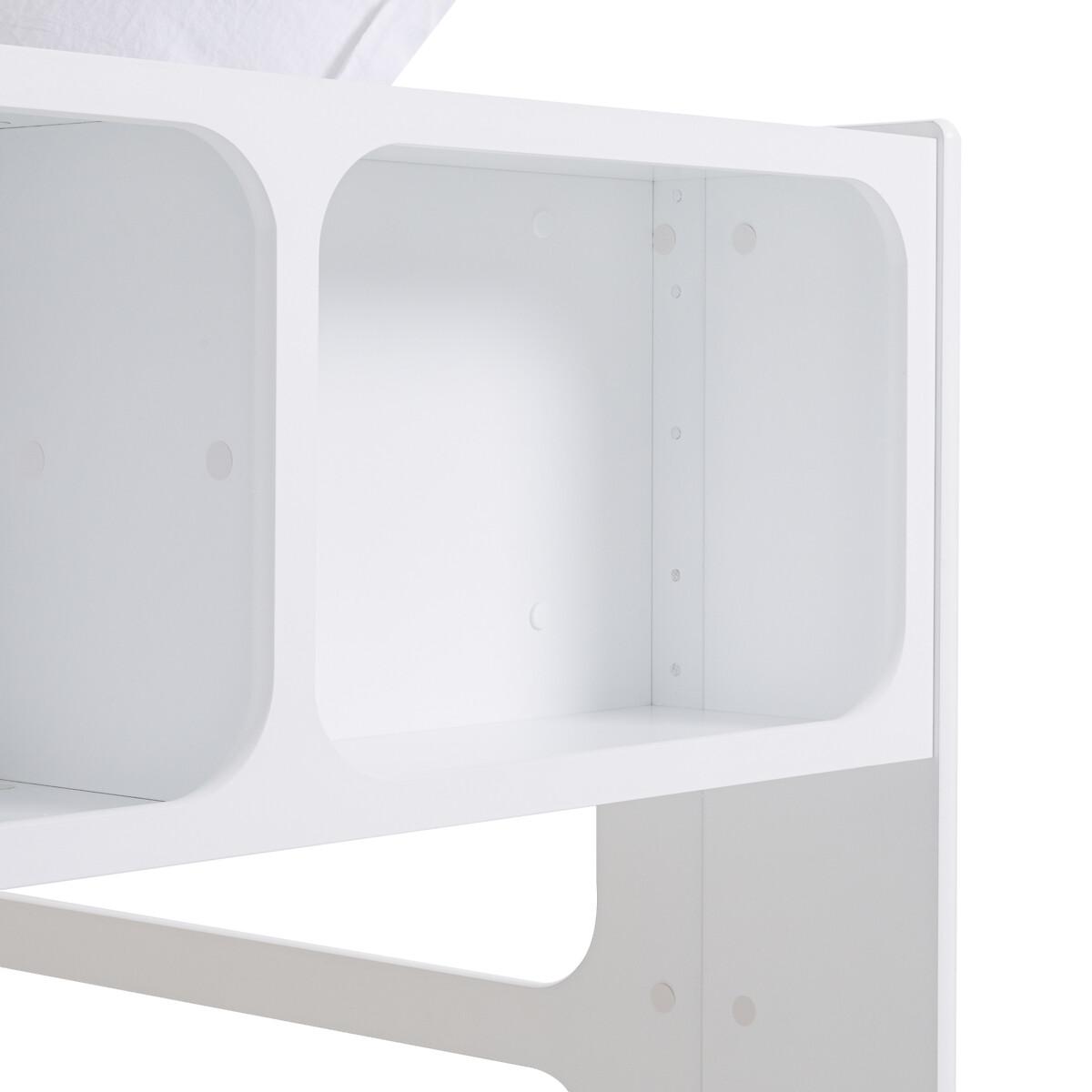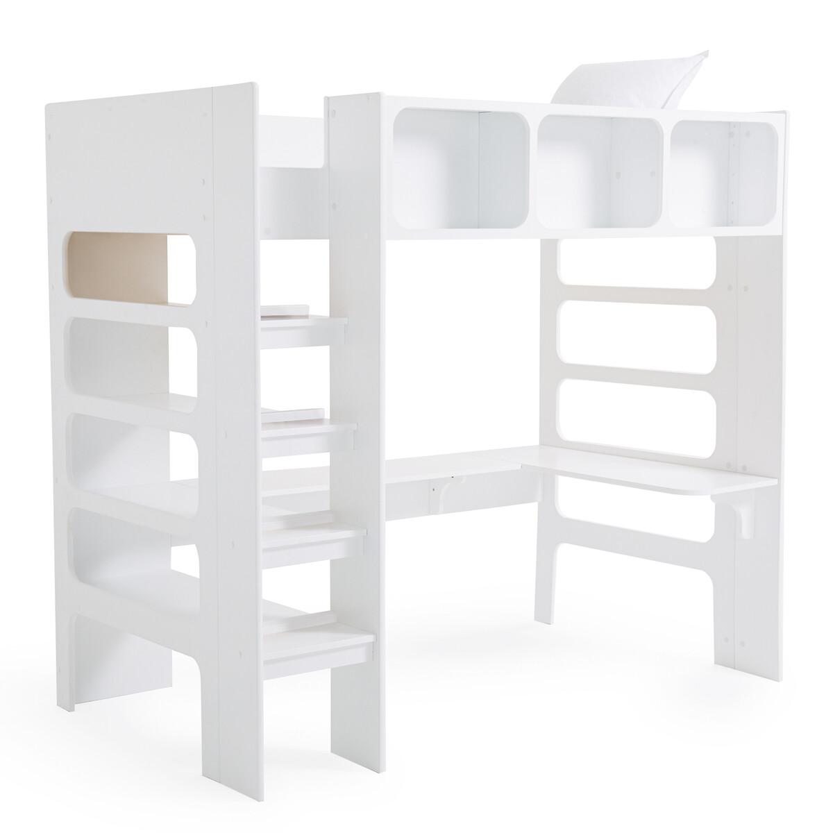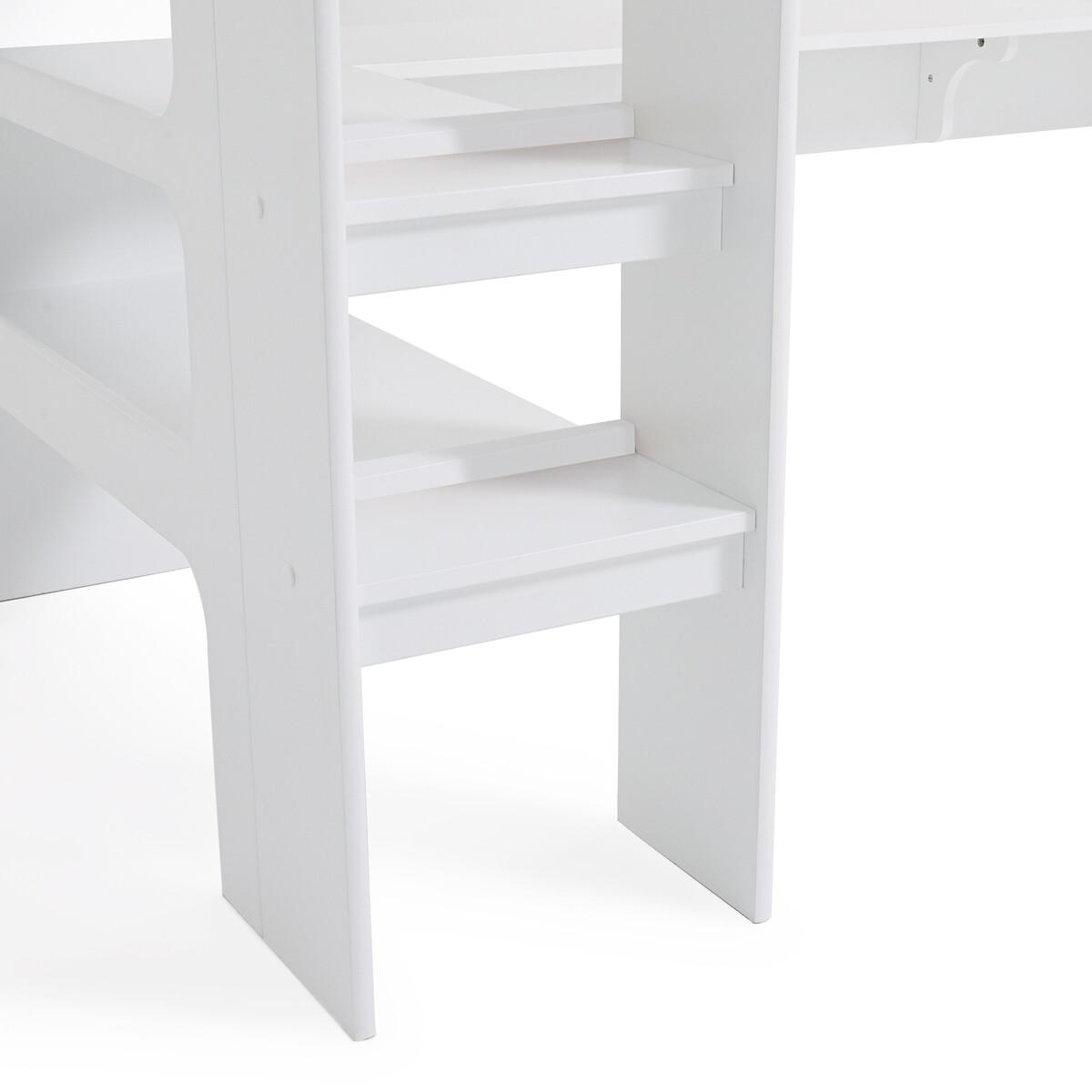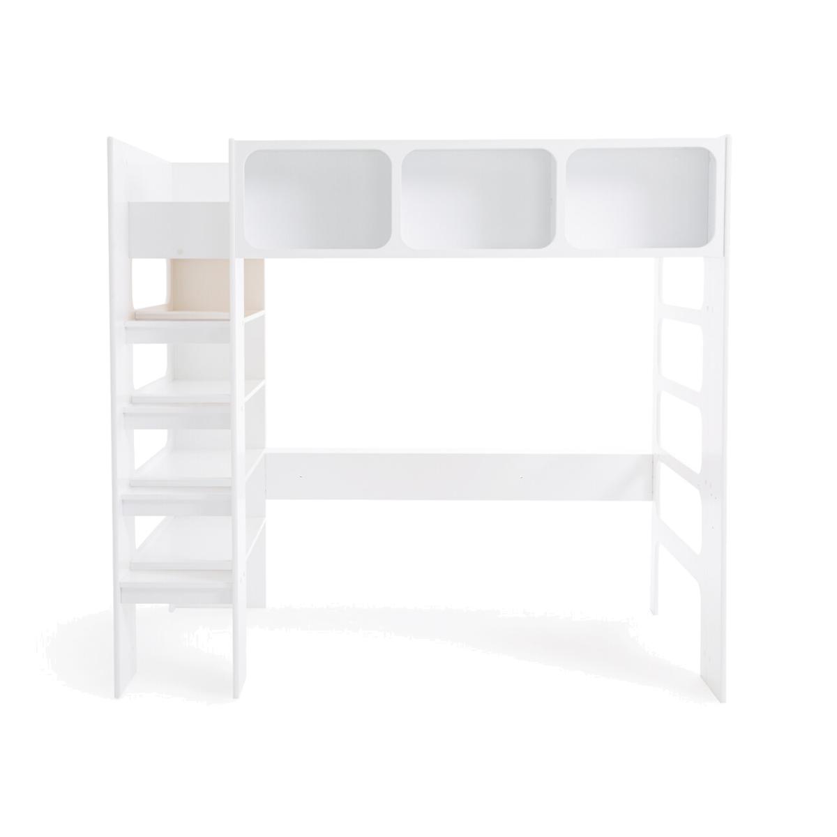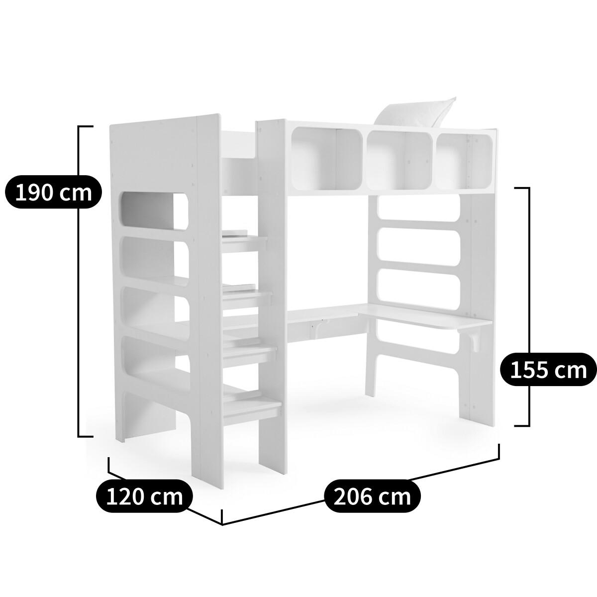 Néo Duplex bunk bed. This cabin bed has room for a desk, freeing up floor space. Made in France, from PEFC™ certified wood. Product Details • 19mm thick MDF panels, made from PEFC™ certified wood. Our wood has a low level of formaldehyde. • White lacquered MDF panels, water-based paint without solvent or volatile organic component. • 3 compartments on the front Dimensions of the Compartments: 49 x 33 x 22cm Dimensions of central compartment: 51 x 33 x 22cm. • 4 shelves on the left side. Dimensions:: 80 x 20 x 38cm. • Solid pine 12-slat mattress support: Sleeping area 90 x 190cm • Mattress sold separately, max height 16cm • Ladder upright in MDF made from PEFC™ certified wood • Solid beech steps under shelves. • Certified MDF desk top, 19mm thick. • Ready to assemble, instructions enclosed • Complies with safety requirements NF EN 747-1&2 (2012) + A1 (2015) • Not suitable for children under 6 years of age • Made in France. Dimensions • Width: 206cm • Height: 190cm • Depth: 120cm • 110kg • Floor height below the bed base: 1.55m Desk Dimensions: • Width: 163cm • Height: 190cm • Depth: 35cm • Back on the side of 82 cm with a depth. of 40cm • Height from ground: 69cm. Home Delivery. This product will be delivered to your home. • Made in France. • WOOD FROM SUSTAINABLY MANAGED FORESTS. PEFC certified wood comes from sustainably managed forests and controlled sources. PEFC contributes to ensuring sustainability and renewal through natural regeneration or planting by preserving trees of the future and promoting the diversity of species. Dimensions and weight of parcel5 boxes • L198 x H108 x D5cm, 26kg • L210 x H51 x D7cm, 31kg • L197.5 x H52.5 x D8.5cm, 29kg • L157.5 x H46.5 x D110cm, 30kg • L131.5 x H53 x D115cm, 25kg