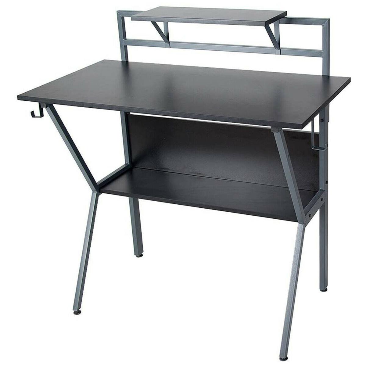 I’m a fan of how this two-tier gaming desk lifts your screen to eye level while leaving neat storage beneath, so cables stay tucked away and your main surface is clear. Its grey metal frame and black desktop suit contemporary, industrial or monochrome interiors - just add a subtle LED strip on the upper shelf and a compact cable tray underneath. Keep styling minimal with a slim desk lamp, headset stand and a single plant on the lower tier to bring in texture. Its compact footprint makes it ideal for corners or small rooms, and the elevated shelf means you can keep your keyboard and mouse at a comfortable height without extra furniture.