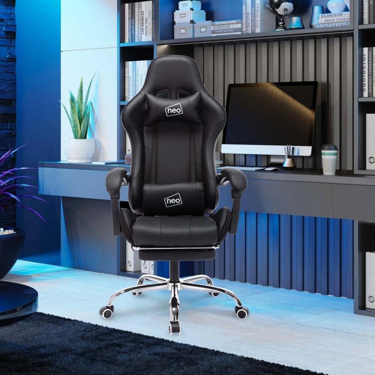 The Neo leather gaming chair is an impressive piece that combines comfort with a sleek, modern aesthetic. Its black leather finish makes it versatile, working well in contemporary interiors, game rooms, or even a sophisticated office setting. I love how the design prioritises ergonomic support, making it practical for long gaming or work sessions. To style it effectively, consider pairing it with minimalist furniture and neutral tones to let the chair be a statement piece, or incorporate bold accent colours through accessories to add visual interest. Its professional yet edgy look can effortlessly blend into various interior styles, from high-tech modern to industrial, adding both functionality and a touch of sportiness.