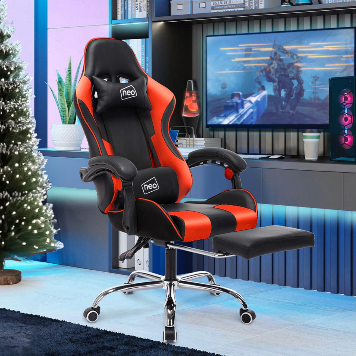 Neo Leather Gaming Racing Recliner Chair With Footrest - RED