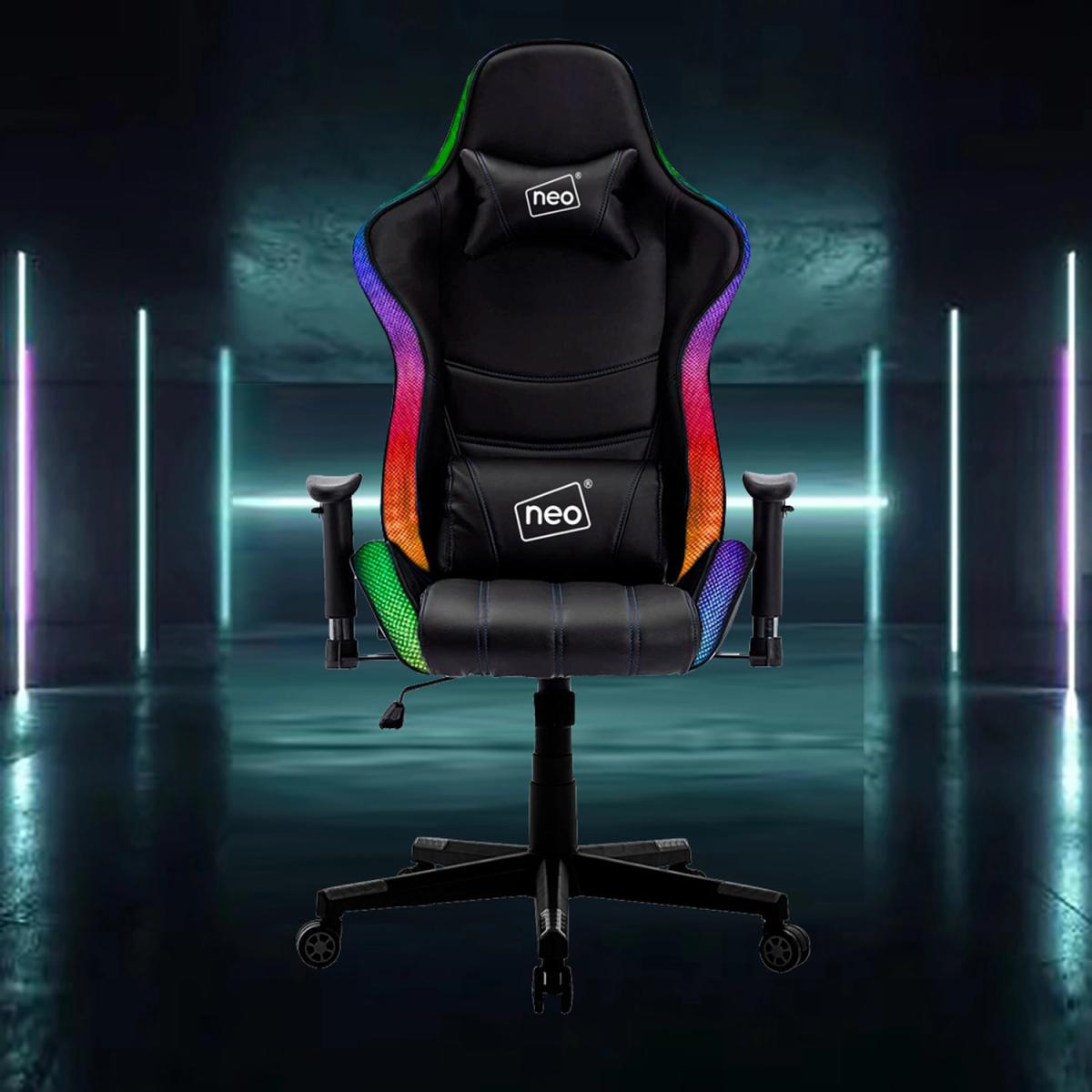 The Neo LED gaming chair offers a modern, tech-inspired look that works perfectly within contemporary or gaming-themed interiors. I love how its sleek black finish is elevated by colourful LED accents, adding a vibrant but controlled pop of colour without overwhelming the space. It pairs well with minimalist desks, black and metallic furnishings, or even a dedicated gaming corner featuring neon lighting. For styling tips, consider keeping surrounding furniture simple and neutral to let the chair stand out, or incorporate matching LED accents elsewhere in the room to create a cohesive tech-infused aesthetic. Its ergonomic design also makes it practical for long gaming or working sessions, blending style and function seamlessly.