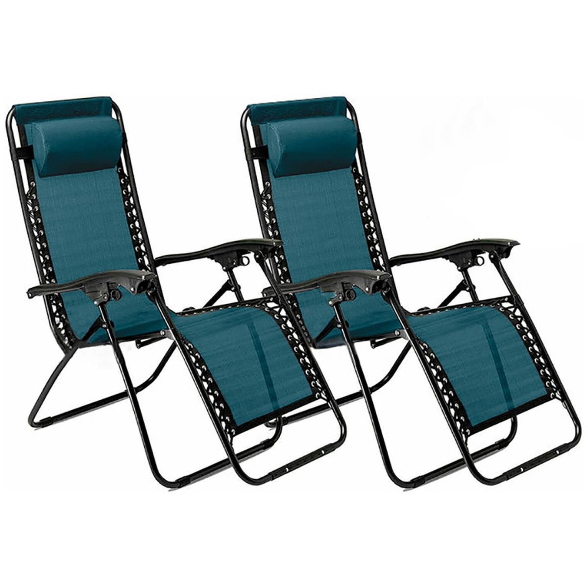 Neo Zero Gravity Recliner Garden Sun Lounger Chairs - Set of 2 - Green