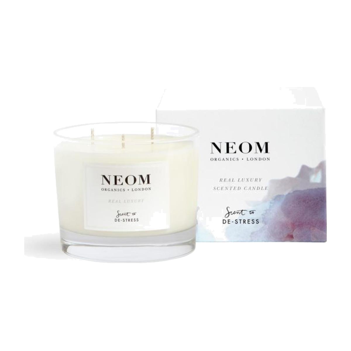 Promote a calmer and stress free frame of mind with the NEOM 3 wick Real Luxury candle as part of their scent to de-stress range. Infused with the scents of 24 pure essential oils including lavender, jasmine and Brazilian rosewood. The lavender and jasmine work to restore calm and balance whilst the brazilian rosewood plays a key part in helping you to feel calm and banish any stress you may have built up.