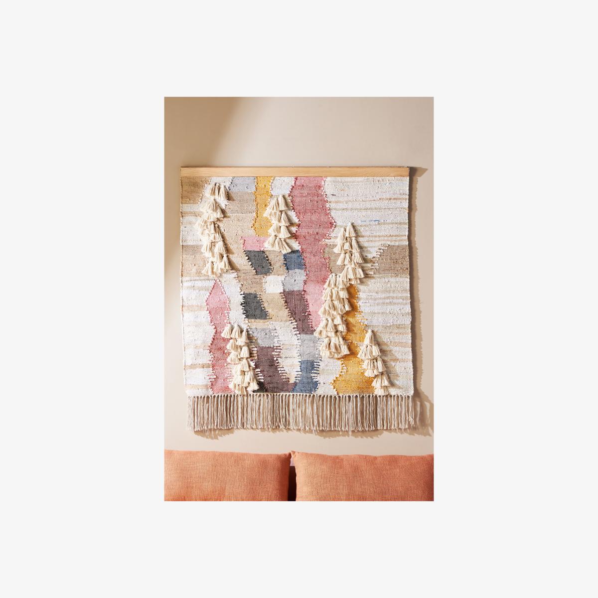 I love this woven cotton tassel wall hanging for its relaxed yet sophisticated look, making it a versatile piece for various interiors. It works particularly well in boho, eclectic, or even modern rustic spaces, adding texture and visual interest without feeling heavy. Practical styling tips include hanging it above a neutral sofa or bed to create a focal point, or layering it with other textiles like throws and cushions for an inviting vibe. For added impact, consider pairing it with natural wood or earthy accents to enhance its tactile, handcrafted appeal. Its neutral tones and subtle colour pops make it easy to integrate into spaces that benefit from an organic, laid-back touch.