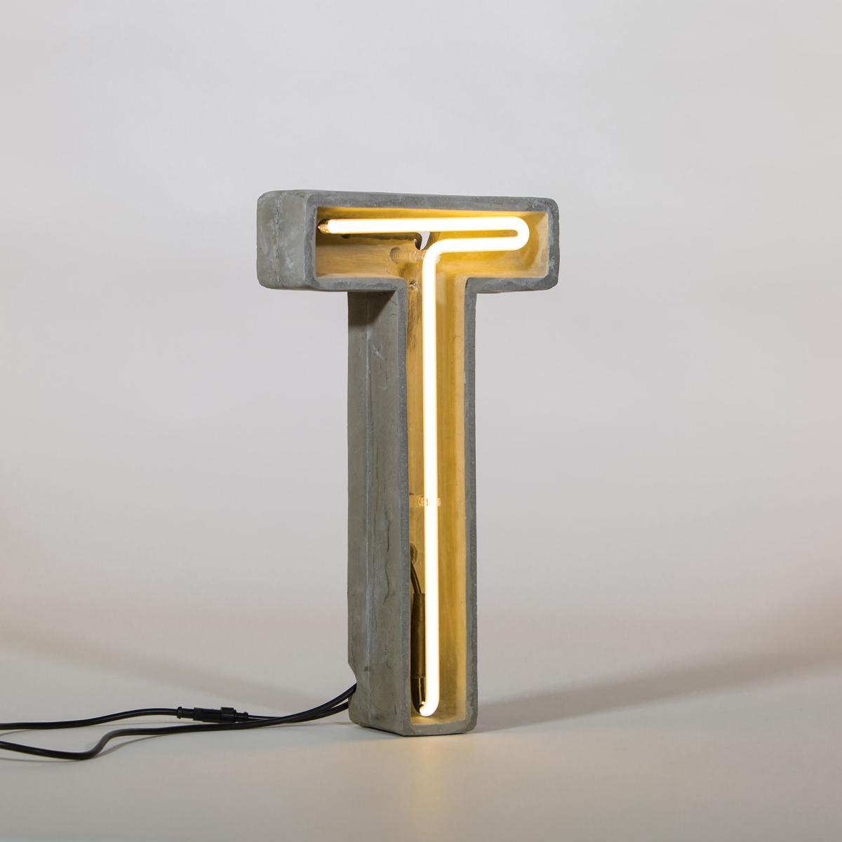 Néon Alphacrete Table lamp - Letter T - Indoor / outdoor by Seletti White/Grey