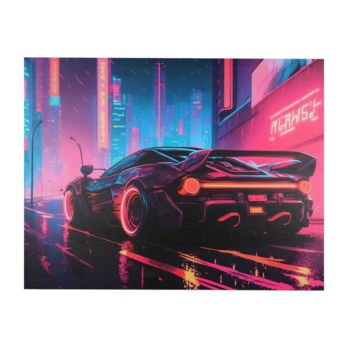 The Neon City Sports Car Canvas is a cool and sleek addition to any room. The canvas depicts a cool sports car cruising down the road on a rainy evening, the neon lights from nearby buildings and signs making the scene feel as if it's glowing. This canvas is quick and easy to hang thanks to the hole hook and all fixtures and fittings are included for convenience.