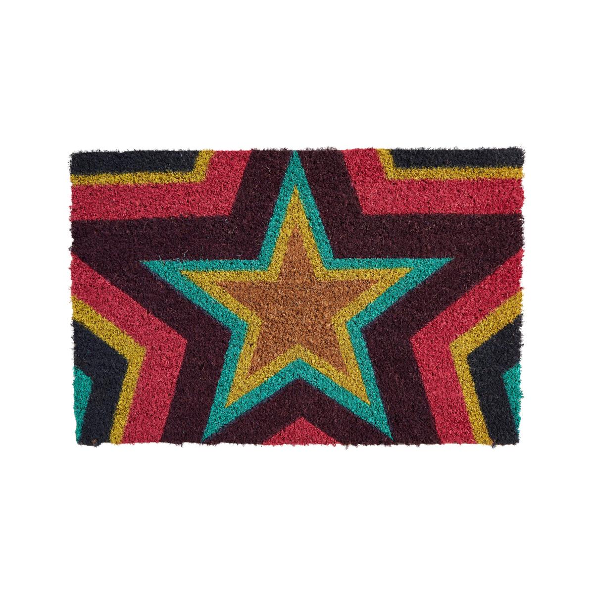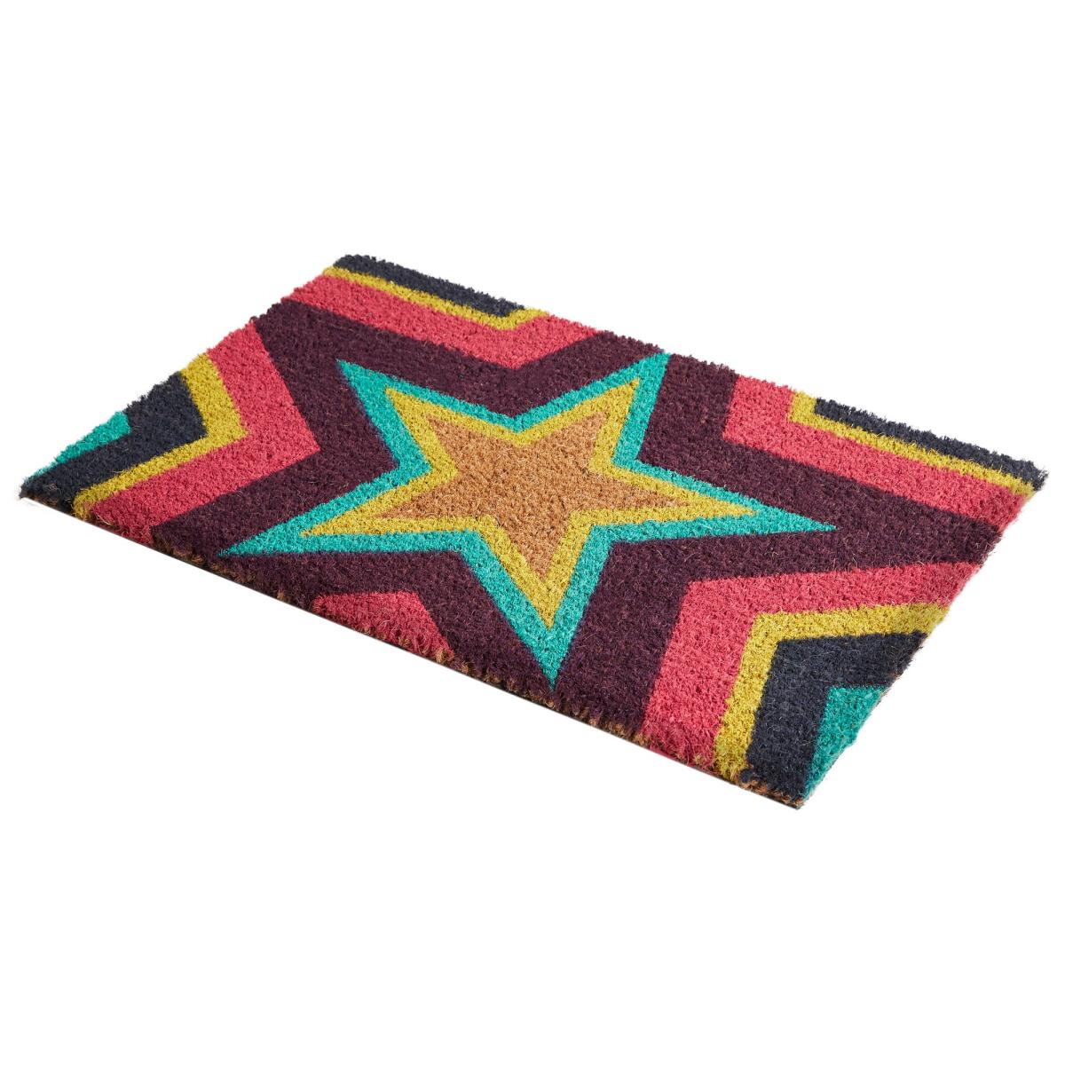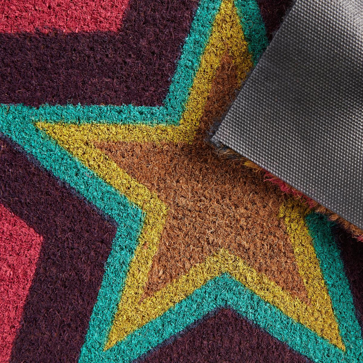 Neon Star Coir Doormat Green/Red/Yellow