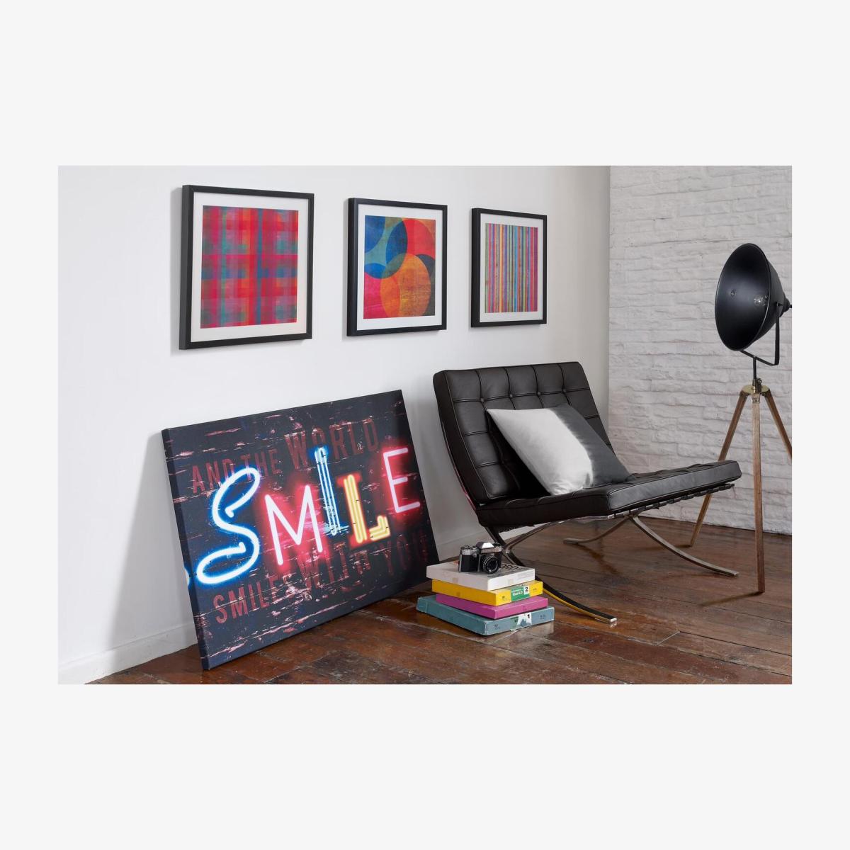 I love how the neon stripe print adds a vibrant, contemporary pop of colour to any space-it’s perfect for injecting energy into minimalist or modern interiors. This artwork works well in living rooms, home offices, or creative spaces where bold accents are desirable. When styling, consider pairing it with neutral furniture or simple decor to allow the colours to really stand out. For a playful touch, position it above a sleek sofa or sideboard, and complement with a few colourful accessories or lighting to enhance the lively feel. Its framed finish makes it versatile, so it can also be easily combined with other modern art pieces or displayed as a statement on its own.