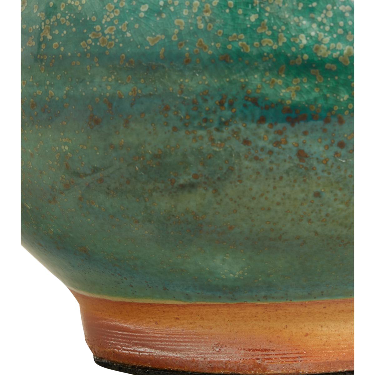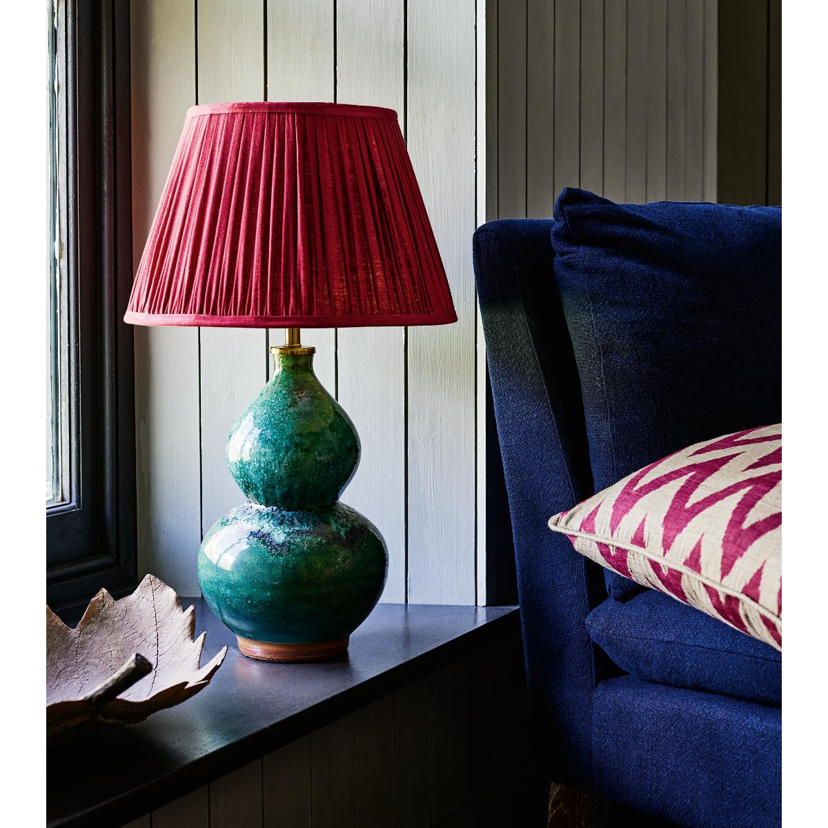 I love this green lamp for its rich, antique aesthetic, which adds a touch of vintage charm to both traditional and eclectic interiors. Its earthy tone and textured ceramic base work beautifully in spaces that feature natural materials or a muted colour palette, offering a subtle pop of colour without overwhelming the decor. For styling, I recommend pairing it with neutral or patterned shades to keep the look balanced. It works particularly well on side tables, consoles, or bedside tables, where its colour and form can be appreciated up close. To create a cohesive look, consider coordinating with other green or glazed elements in the room, or using it as a statement piece in a more subdued setting.