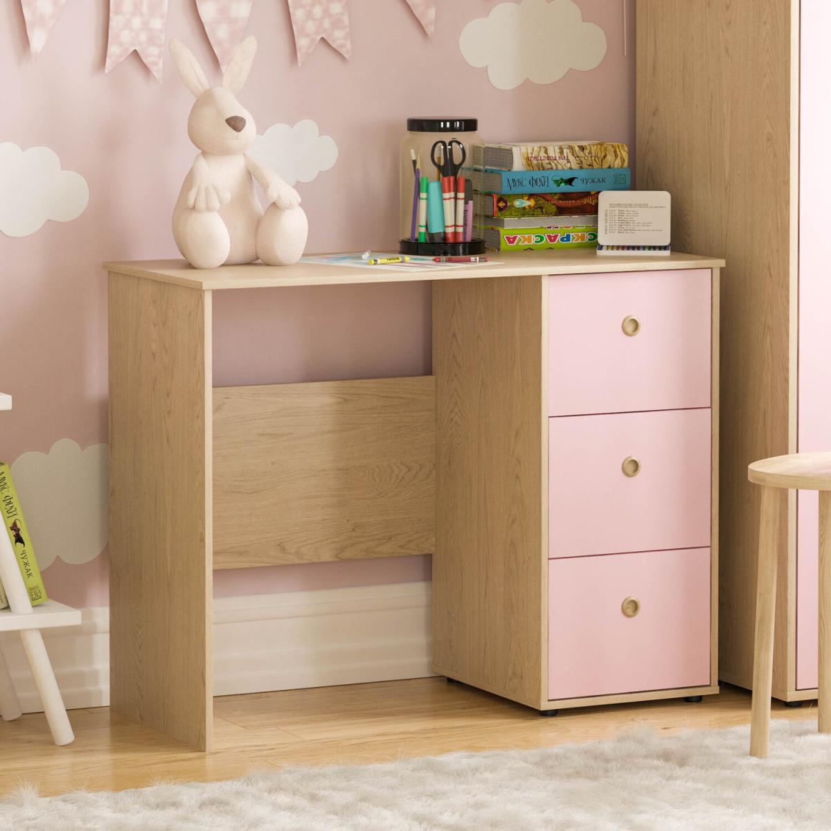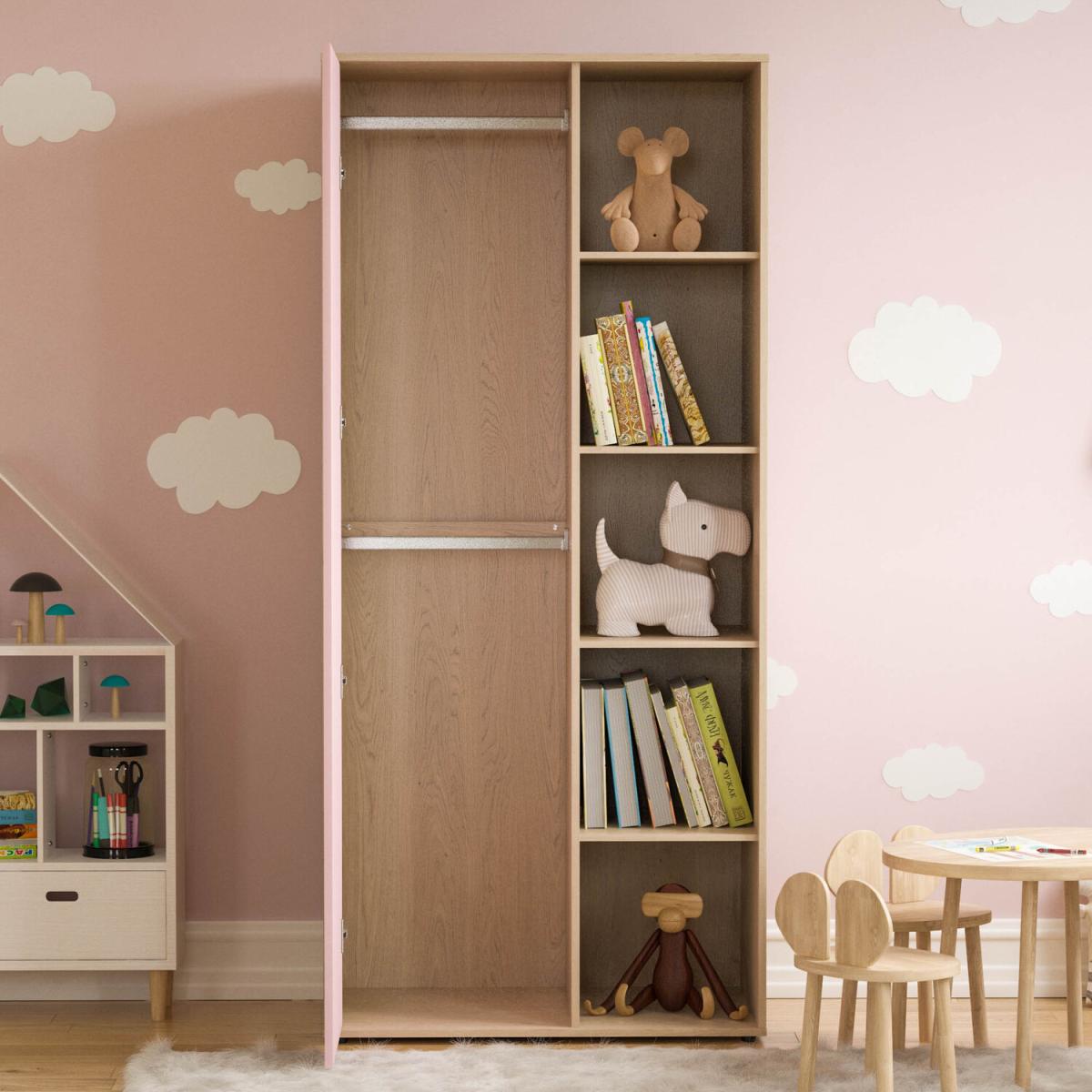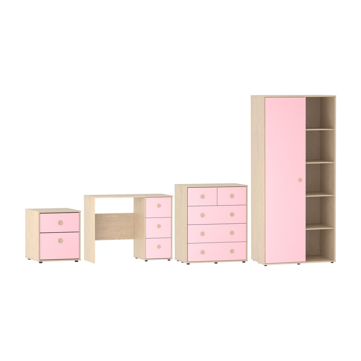 Take a look at this versatile addition for your kids bedroom - it offers everything they need, such as bedside table, 5 drawer chest, desk and a wardrobe. Bedside table will help to make bedtime routine consistent by providing permanent home for bedtime stories and toys, whereas chest of drawers will accommodate all of the folded garments in organized manner. Wardrobe features 5 open shelves and 2 hanging rails for even more storage. To ensure they have a convenient place to study there is a gorgeous desk with sliding drawers.