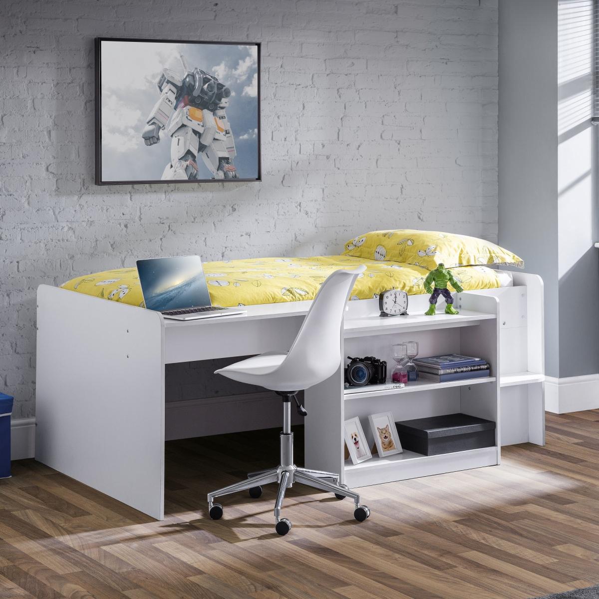 * Space-saving design with shelves, desk and underbed storage* Minimalist style suitable for boys and girls bedrooms* Strong and sturdy frame with wooden slats Sleep, store, and study in style with the Neptune Midsleeper. Designed for those who value functionality and style, this midsleeper offers ample storage space, a desk for study, and a sleek minimalist look that suits any modern bedroom. Made with a strong and sturdy frame and wooden slats, you can rest easy knowing you'll have a good night's sleep.