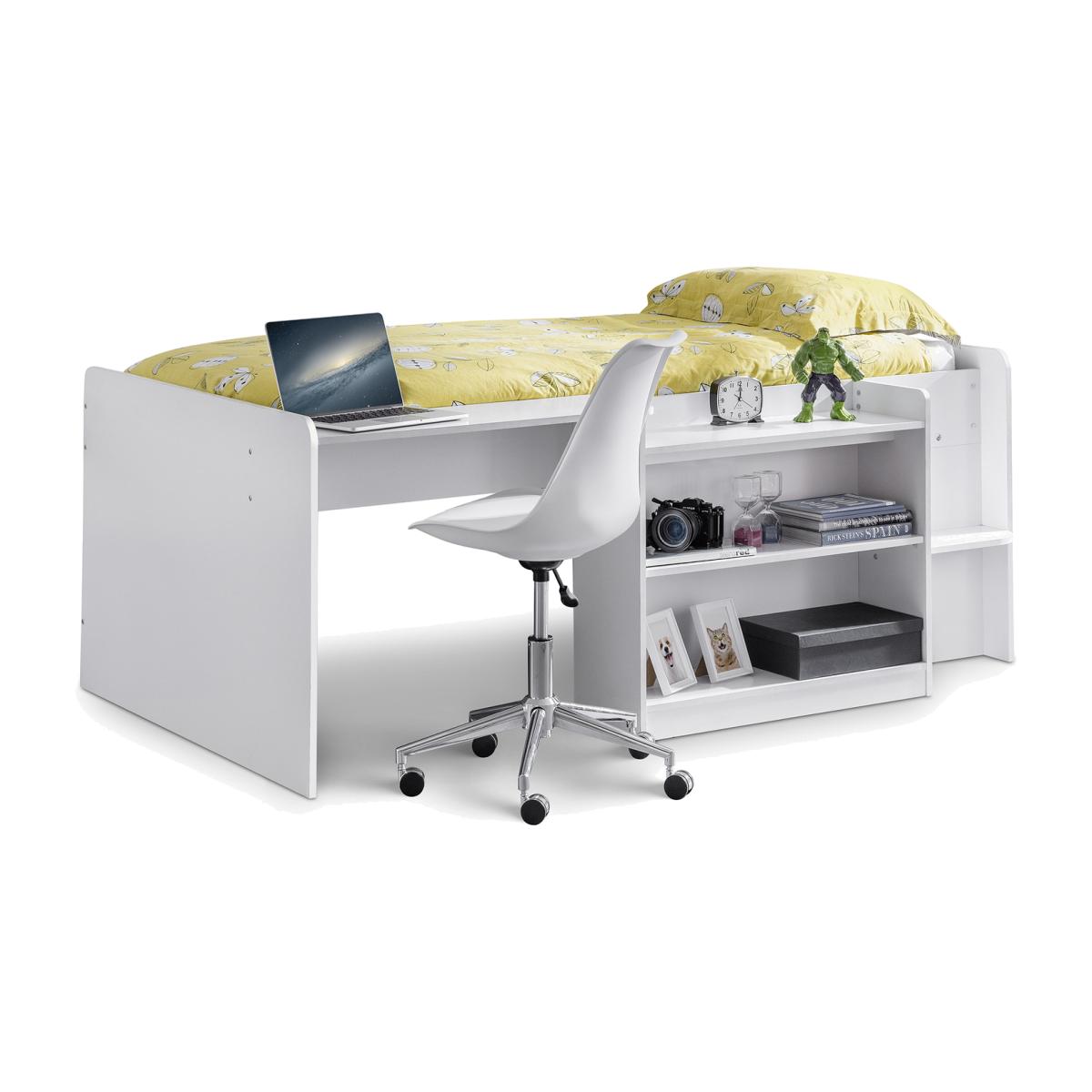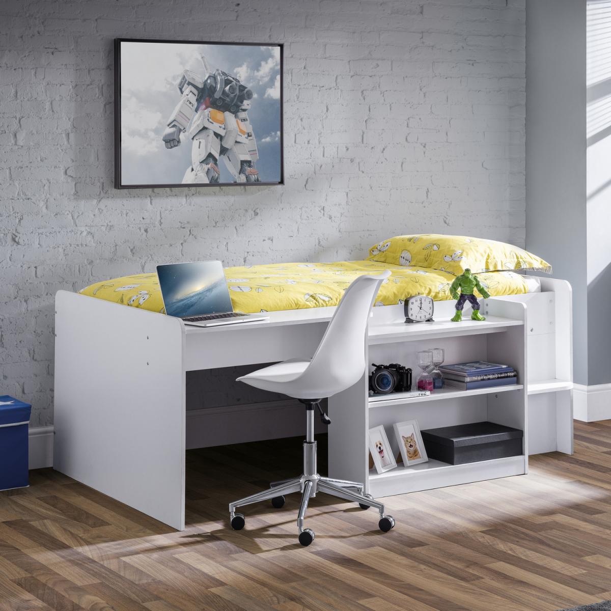 I love this clever midsleeper because its clean white finish offers versatility to suit various interior styles, from modern minimal to playful children's rooms. It works particularly well in spaces where you want to maximise storage, as the built-in shelving provides practical organisation options without cluttering the room. For styling, I suggest pairing it with colourful bedding and accessories to add personality or keeping it simple with muted tones for a more calming environment. Adding some curated decorative elements on the shelves can also help create a personalised yet functional space, making it ideal for younger bedrooms that need both comfort and practicality.