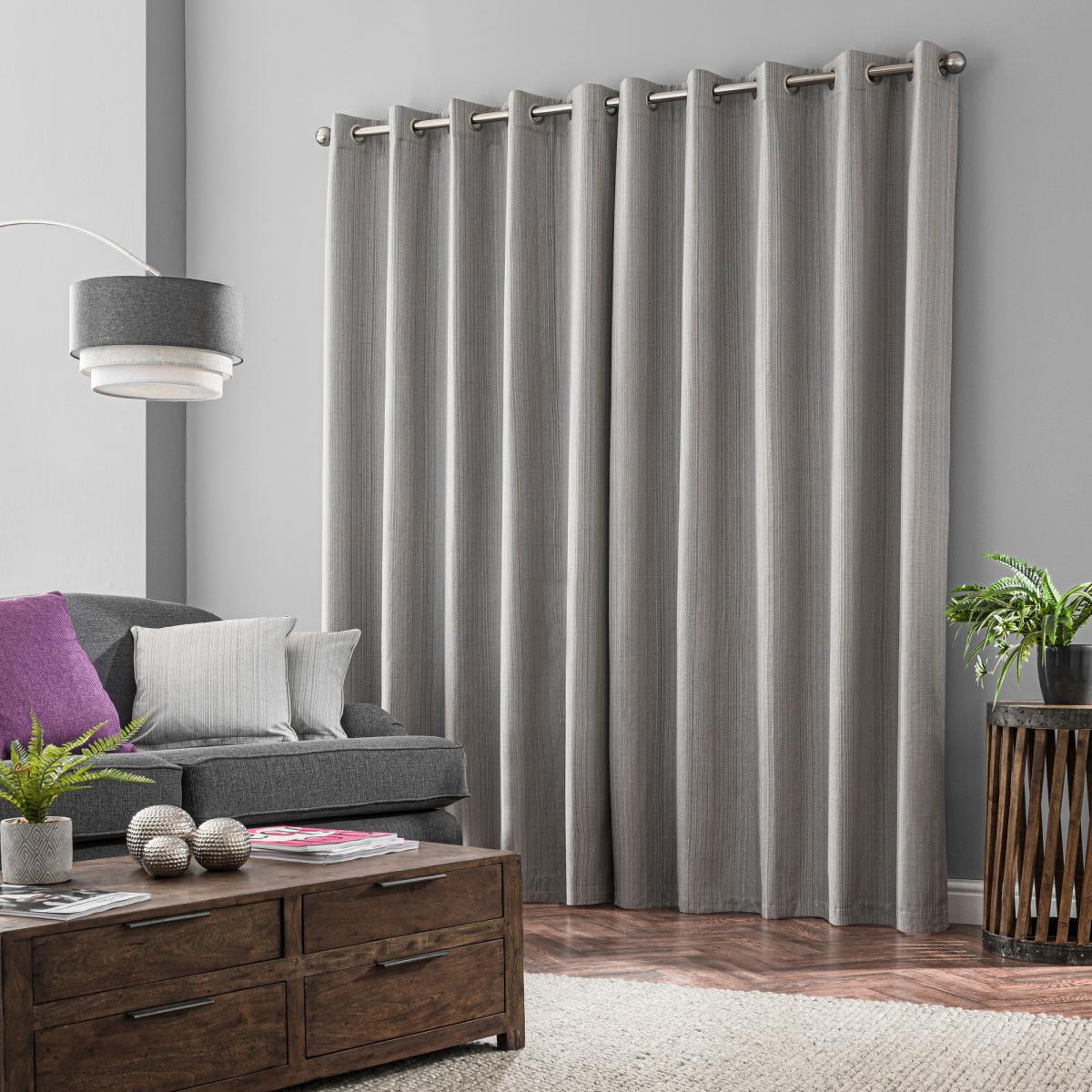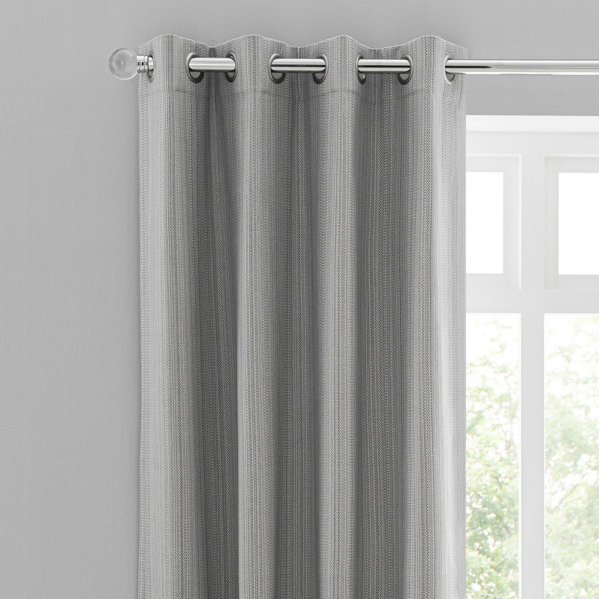 Designed in a versatile grey colourway to suit any room, these blackout eyelet curtains are crafted from beautifully textured fabric for a stunning finish and a unique appearance. These curtains feature a premium blackout coating and help to block out external light while improving insulation and privacy, making them great to ensure a good night’s sleep. A striking feature in any room, these curtains are fashioned with a modern eyelet header for easy installation and smooth movement across your curtain pole. These curtains produce a gorgeous undulating drape for a sophisticated edge and bring a touch of contemporary style to your décor. Available in a selection of sizes to suit your requirements and with a coordinating cushion cover available to purchase separately. Please note: these curtains are sold as a pair.