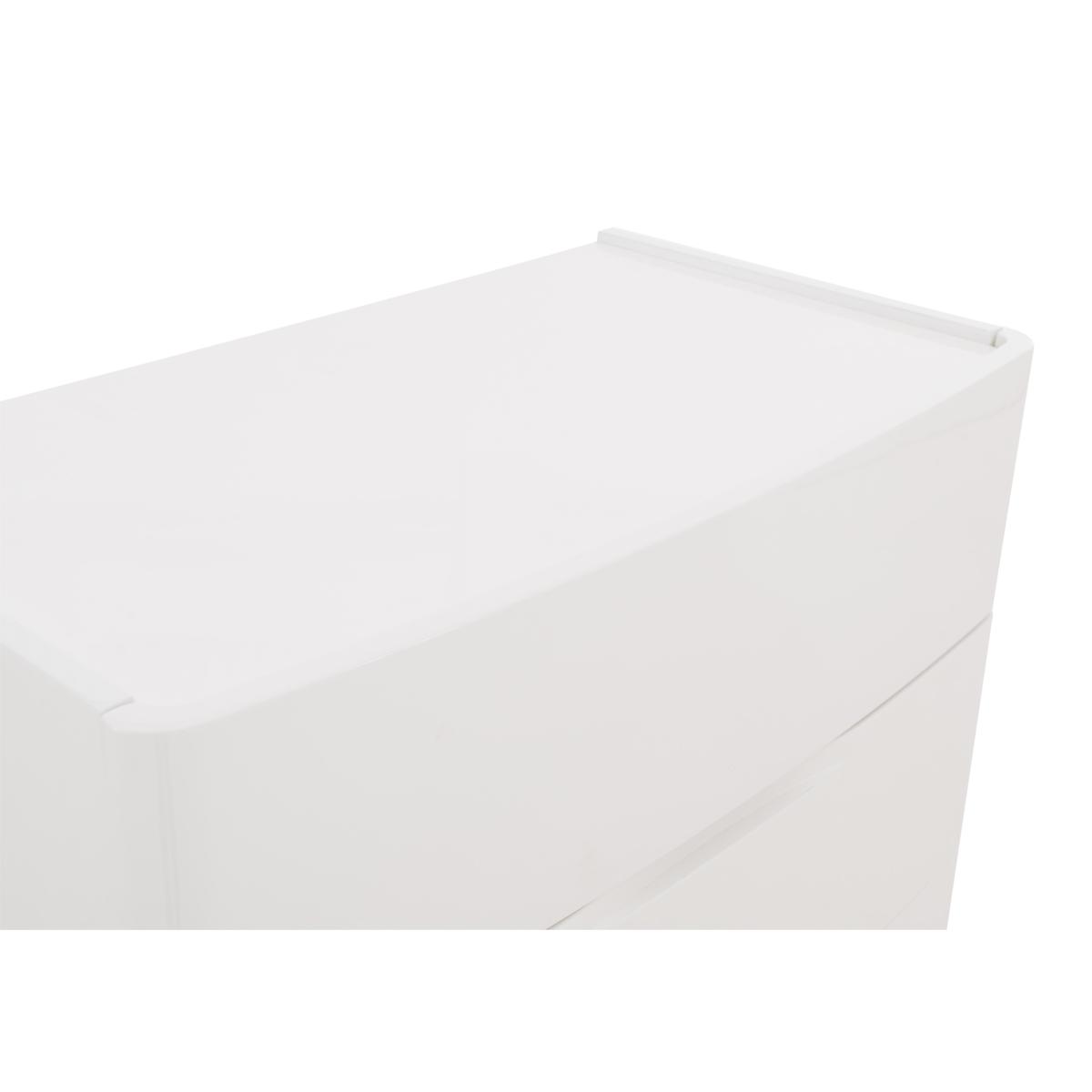 The Neptuni collection is perfect for the modern bedroom. White, bright and stylish, it reflects light and adds a feeling of extra space. There’s a fresh purity about this furniture’s design, with sleek, gently curving lines and well thought out functionality. The toughened glass tops come in a choice of finishes, including black, white and marble. Each piece is beautifully made, from the soft close runners in the drawers to the strong, protective lacquer coating. The floating bed frame even includes integral lights with soft touch switches. Choose Neptuni for high-end, luxurious modern style at an affordable price. Add some sleek modern style to your bedroom with the cool and contemporary Neptuni five drawer tall chest. With its curved corners, luxurious white high gloss lacquer finish and inset handles this gorgeous drawer unit is right on-trend. It sits on a shallow pedestal base, and has five roomy soft close drawers – perfect for storing clothes, linens and more. This modern chest of drawers has a top in a choice of lacquered and practical toughened glass finishes in grey, taupe white, black and marble effect. High end designer style, at a great value price. Part of the Neptuni collection of gorgeously glossy white bedroom furniture, which includes chests, a floating bed frame and a slider wardrobe. WARNING!. Furniture can tip over unexpectedly and cause injury. This item shall be fixed to a wall using the anti-tip kit provided with the furniture. Be sure to use the correct wall fixings suitable for the walls in your home. Did you know?. Hairline marks are a natural feature of this furniture's beautiful, high gloss finish.