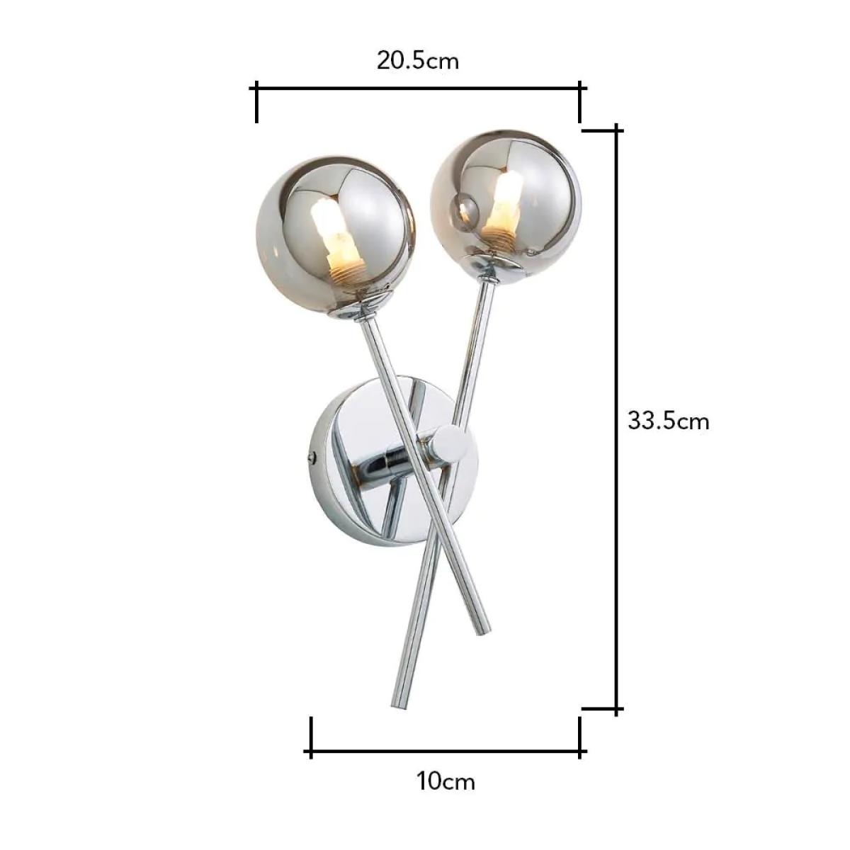 Find the perfect accent light for modern bathrooms with the Nera Bathroom Wall Light. This bathroom light looks ideal when styled on either side of a bathroom mirror and is IP44 rated for water resistance. It also comes in a high shine chrome finish with a cross over design and reflective smoked glass shades that diffuse a stunning glow outwards for a contemporary appearance.