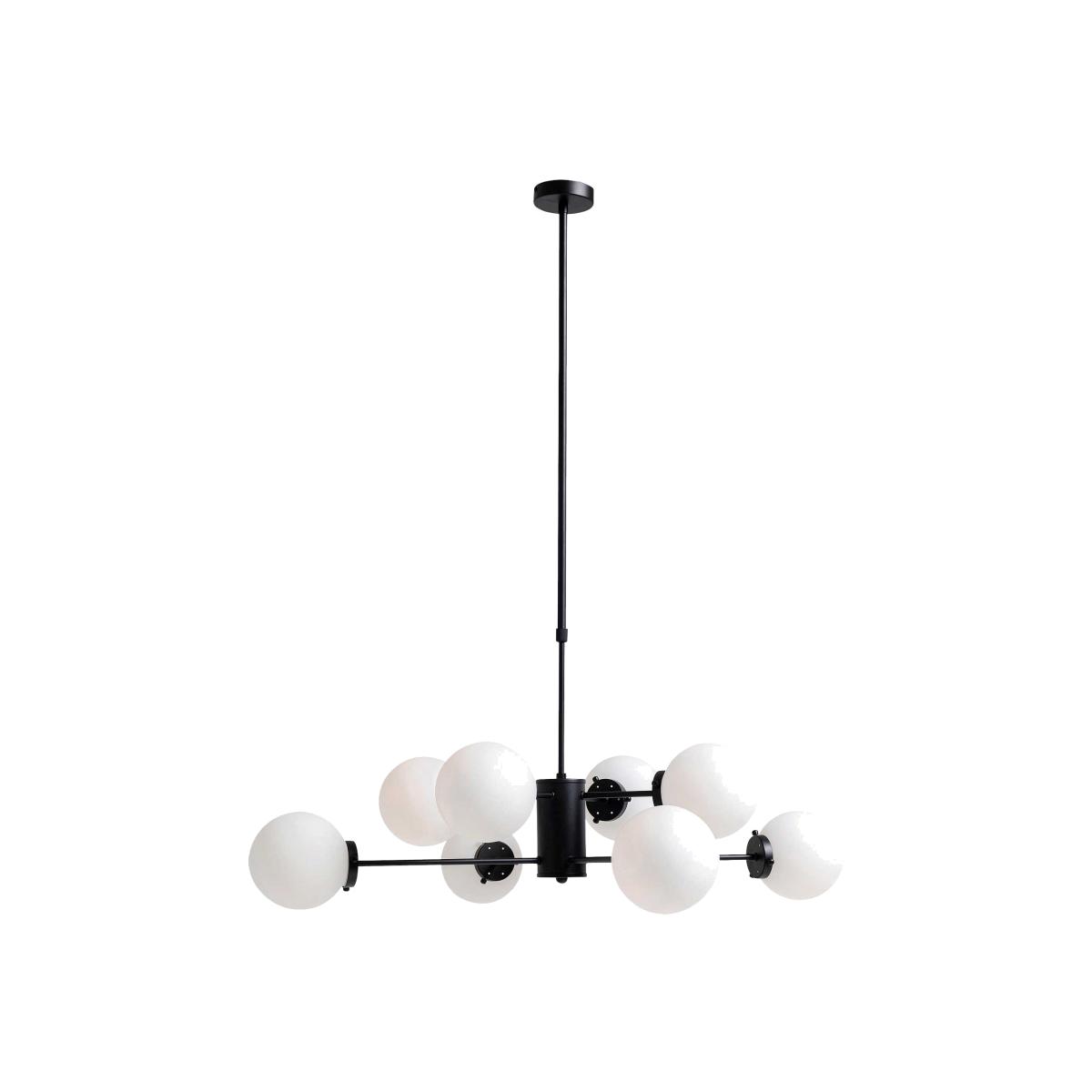 The Nera Black Bulb Pendant is the perfect showstopping light that provides a contemporary design to suit an array of home decoration styles. The base and arms are finished in black and feature eight etched glass individual lights, perfect to create a stylish feature above a dining table or in a hallway.