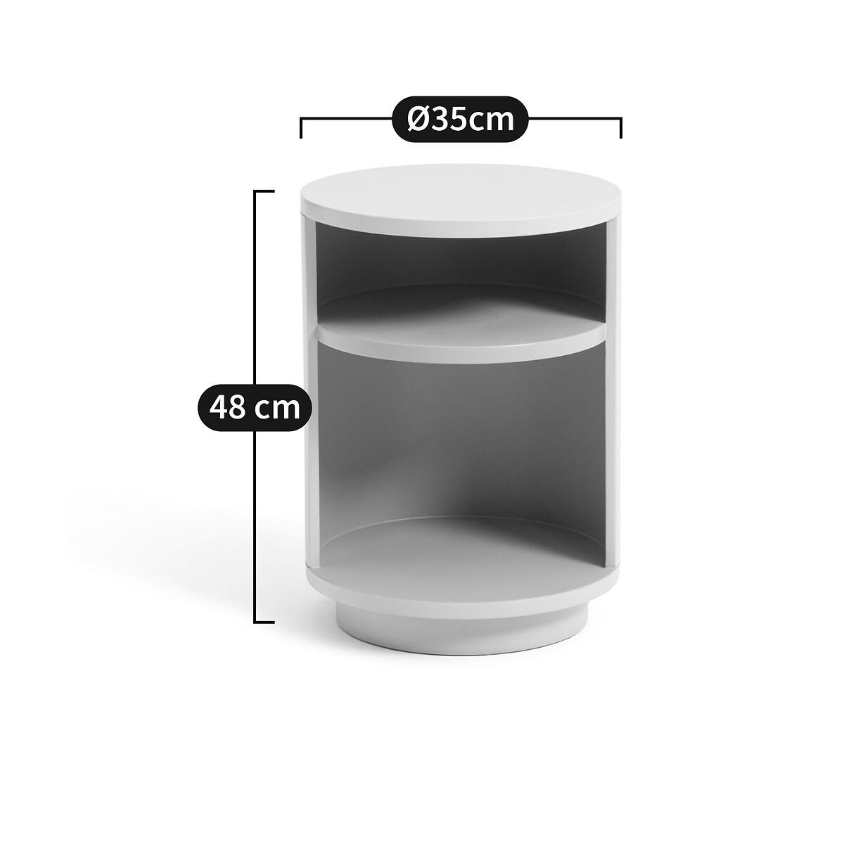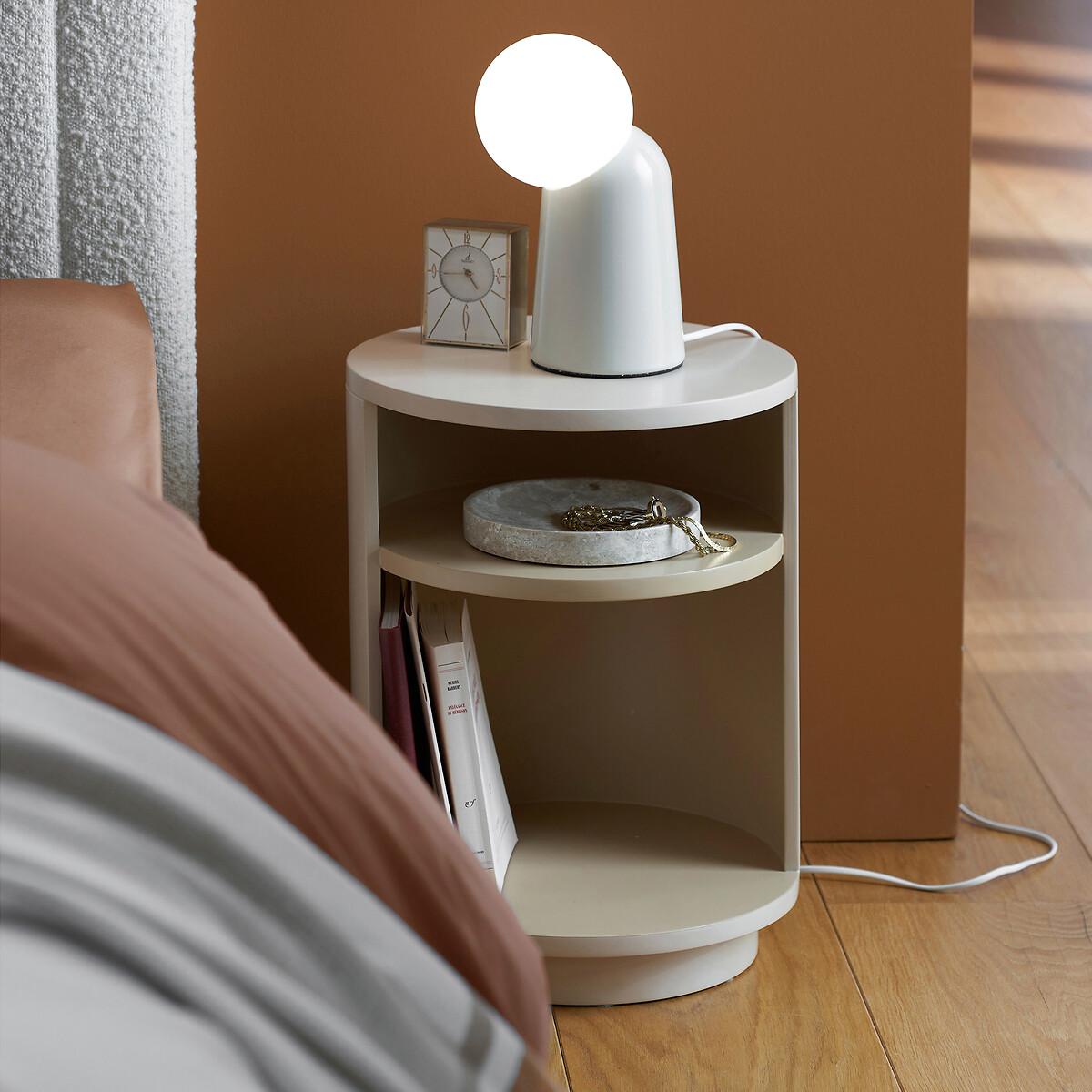 The Nereo bedside table stands out for its functional simplicity. With two open storage compartments and a softly curved design, inspired by the 70s, it offers practical storage space and an understated retro style. Its cylindrical shape brings a touch of originality without extravagance, integrating perfectly into all rooms. Designed by La Redoute Interiors. Product Details • 2 open storage compartments • FSC® certified MDF unit, lacquered finish, nitrocellulose varnishDimensions. Total • Diameter: 35cm • Height: 48cm • Weight: 6kg. Usable space • Upper compartment: L31 x H11.9 x D33cm • Lower compartment: L31 x H25.7 x D33cmDelivery:. Sold pre-assembled. Note! Please check that all access points are large enough to accommodate your delivery (doors, stairs, lifts). • WOOD FROM SUSTAINABLY MANAGED FORESTS. FSC® certified wood comes from forests that are environmentally, socially and economically well managed. Parcel dimensions and weight • 1 parcel • L40 x H57 x D40cm. 8.6kg