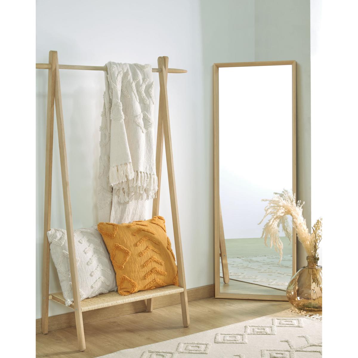 This full-length mirror with its natural finish frame is a versatile piece that can add warmth and a sense of space to many interiors. I love it for its understated style, which works particularly well in Scandinavian, boho, or modern minimal spaces. Its size makes it ideal for bedrooms, hallways, or dressing areas, providing both function and visual interest. For styling tips, consider layering this mirror with plants or decorative accessories nearby to create a lived-in, inviting look. Keep it simple to highlight the natural wood tone, or pair it with other natural materials like rattan or linen to enhance its organic feel.