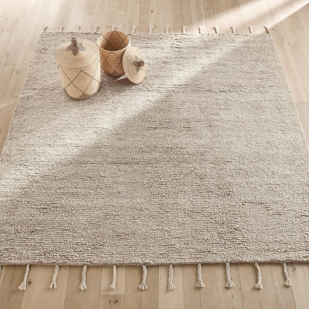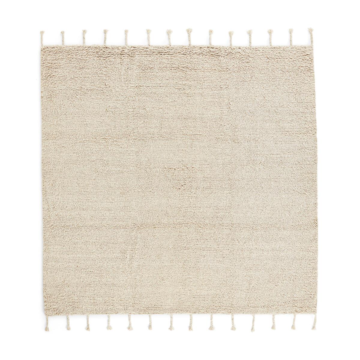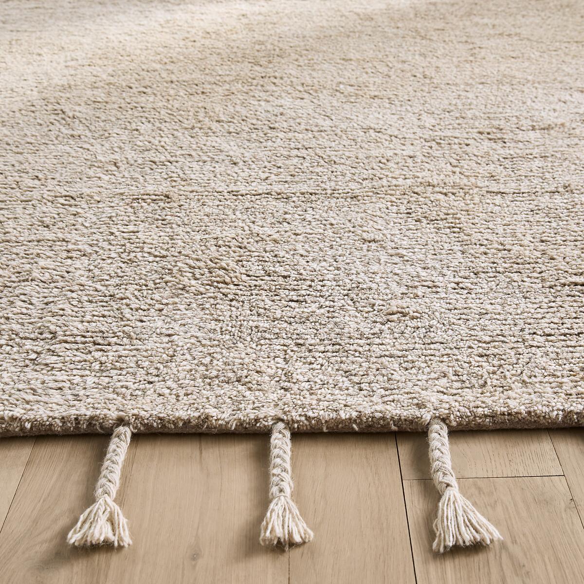 I really like this one because it combines texture and simplicity effortlessly. The XL size makes it versatile for both living rooms and larger bedrooms, adding warmth without overwhelming the space. Its neutral colour and fringed edges make it easy to style with various colour schemes, from soft pastels to more vibrant palettes. For a modern look, layer it over a sleek timber or concrete floor, and pair it with minimalist furniture. If you want to create a cosy nook or define a seating area, this rug works equally well as a foundation. Practical tip - since it’s wool, it’s good to keep it clean with a gentle vacuum and avoid excessive moisture, ensuring it stays looking fresh and inviting.