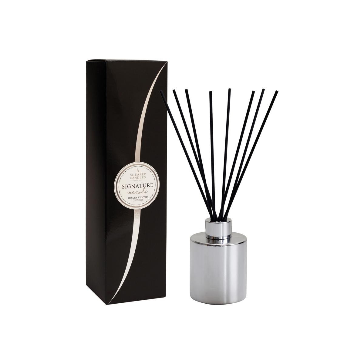 This product will be dispatched by one of our trusted suppliers. You’ll be contacted by their selected courier about your delivery. A calming, sweet citrus scent ideal for relaxing one's mood. This highly scented diffuser is luxuriously finished in metallic silver glass and comes with long, black synthetic reeds for maximum scent throw. Product Dimensions: Height 25.5cm Width 6.9cm Depth 6.8cm This diffuser will last approx 16-18 weeks.