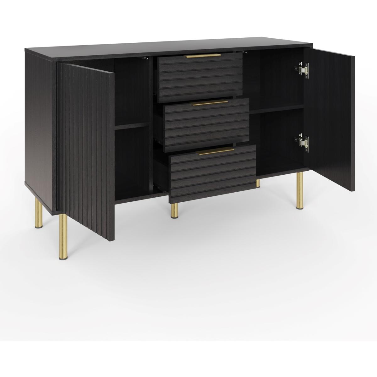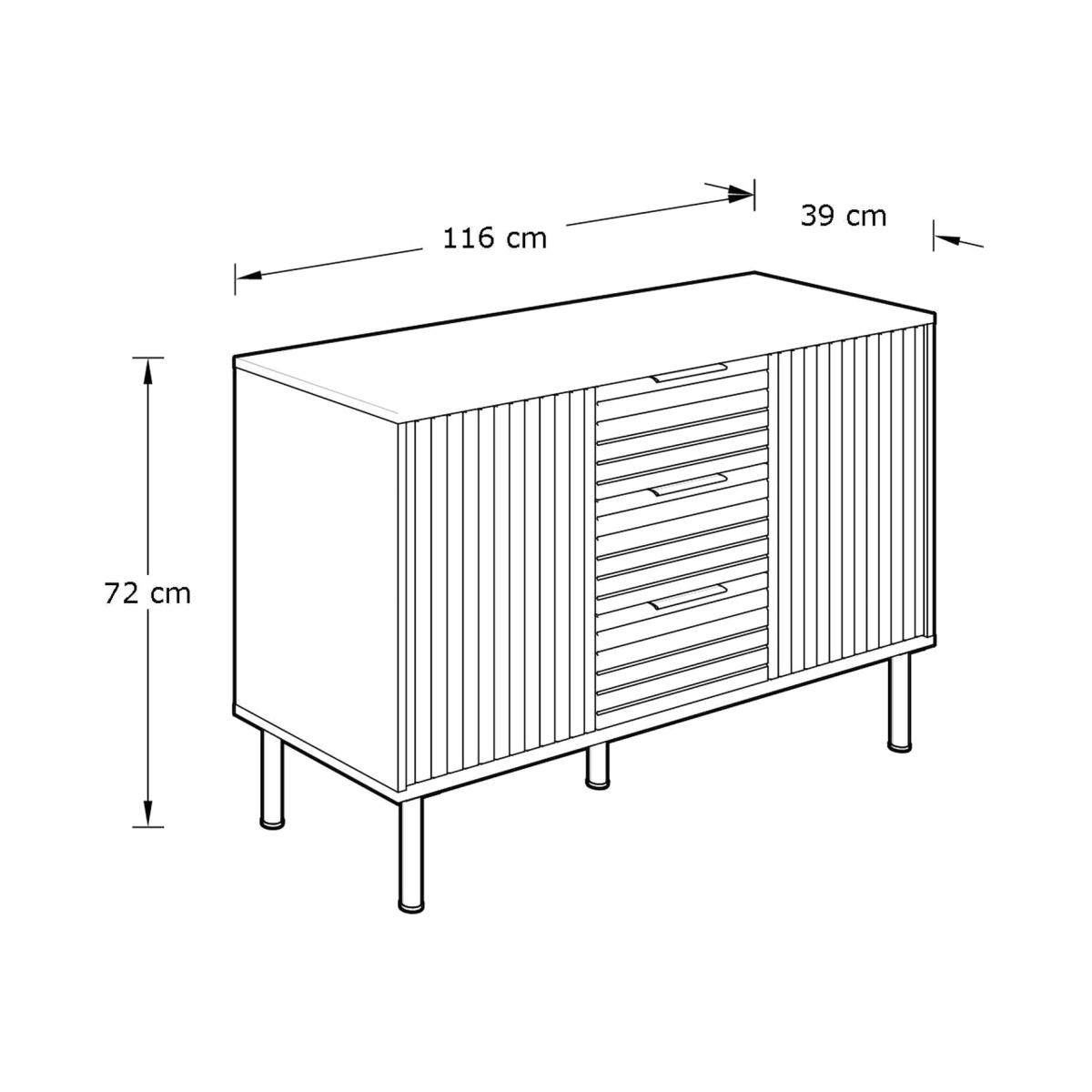 Discover the allure of our Nervata Sideboard, a functional masterpiece that combines elegance and storage. The wooden panels, enhanced with wood grain texture, create a sense of luxury and sophistication. With its captivating gold accents and sleek black design, the Nervata Sideboard is a statement piece that adds a touch of opulence to your dining or living area. In the Nervata Range, every piece is thoughtfully designed to offer a unique and exceptional experience. Whether it's the coffee table, lamp table, sideboard, or TV unit, each one represents the perfect blend of elegance and functionality, allowing you to create a home that is truly a masterpiece.