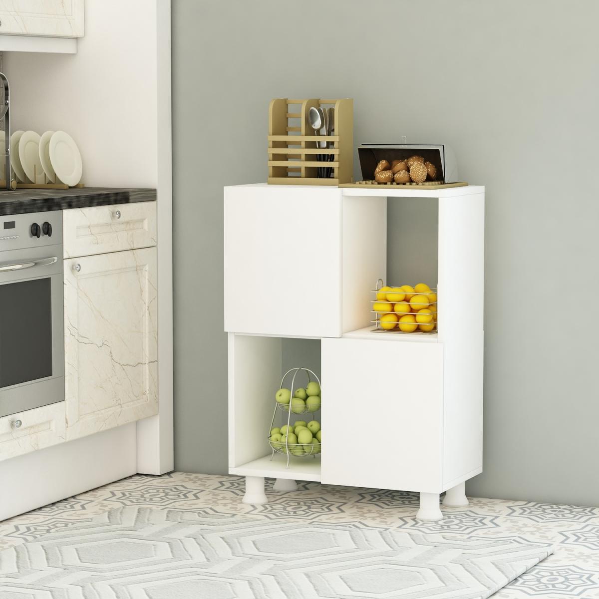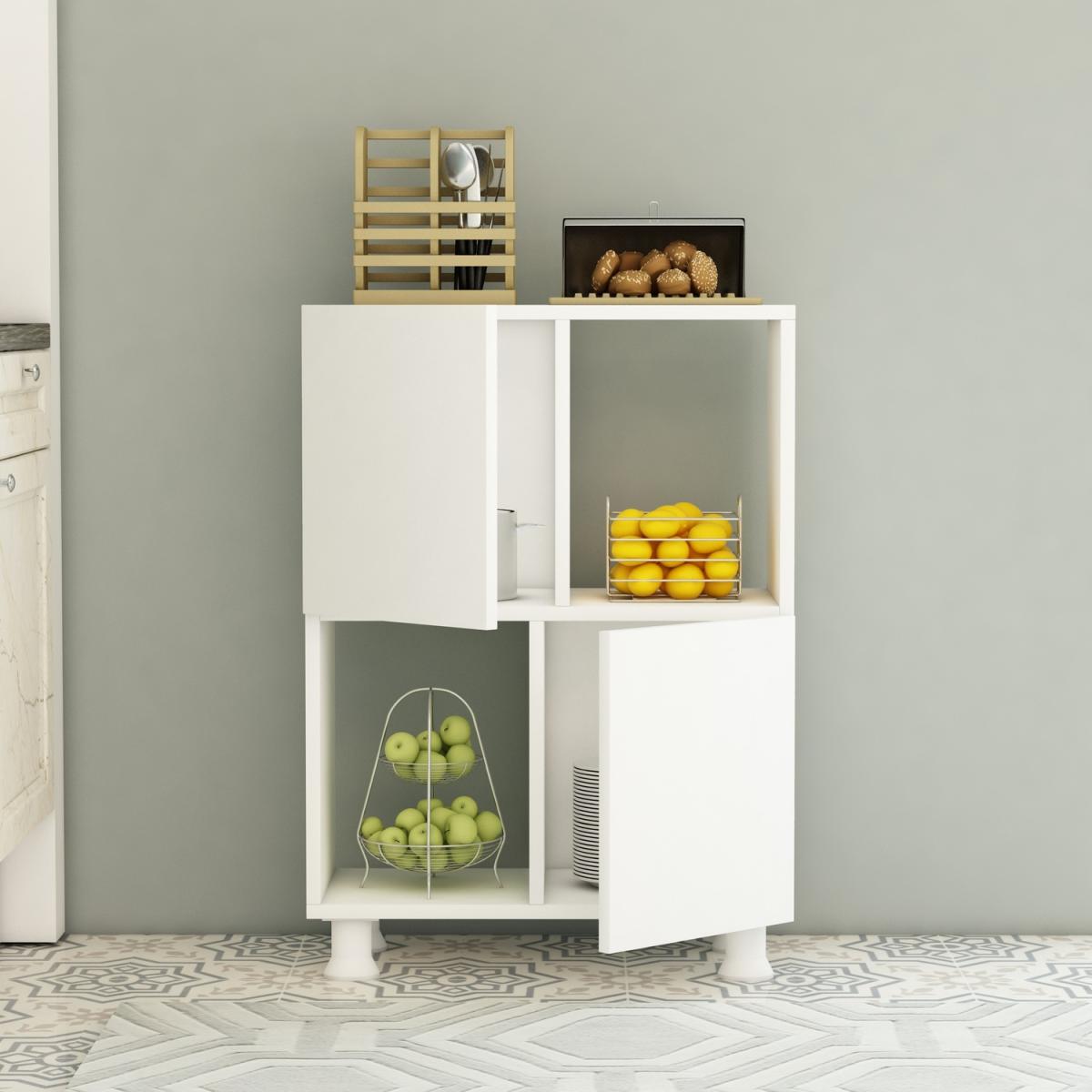 The Multi-Purpose Cabinet is made of an 18 mm thick high-quality melamine coated particleboard. The manufactured wood surface is water-resistant to some extent and the edges are banded with PVC edge banding tape. Legs are solid plastic. First-class assemblyinstallation hardware and accessories are used. Our products are produced from certified quality raw materials that do not contain carcinogenic substances and comply with European Union health norms.
