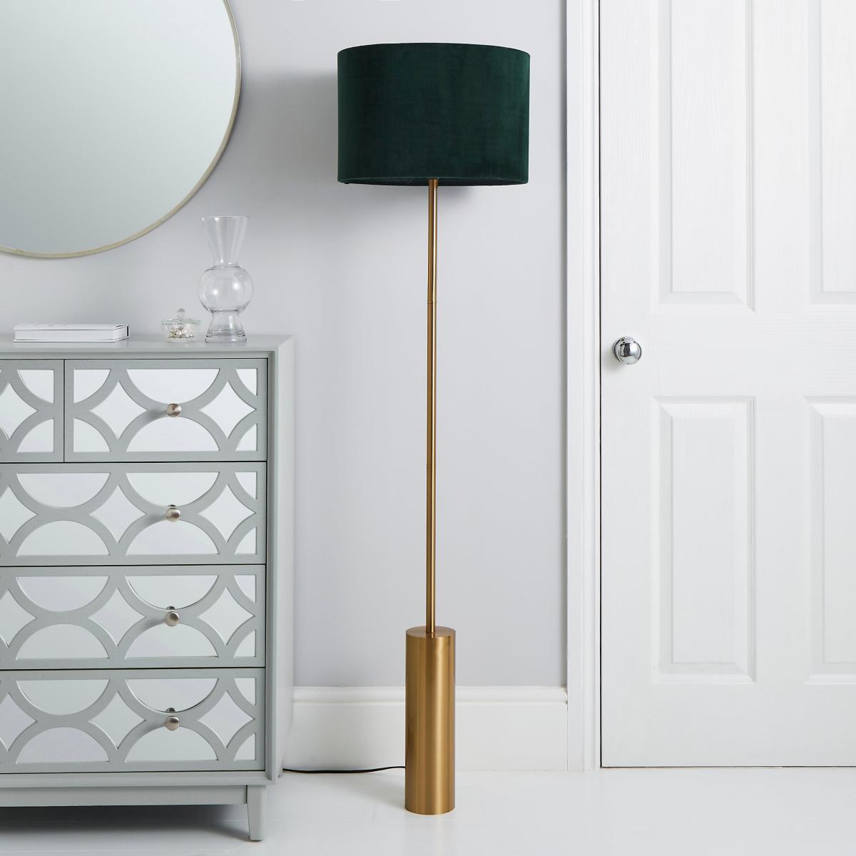 Featuring the luxurious and stylish Nesa Touch Complete Floor Lamp, with a brushed gold finish base and Bottle Green velvet shade. This floor lamp is the perfect piece to accompany any room of the house, with its modern colourway that will complement an array of home decors. Matching family items are available to help coordinate the look of any room.