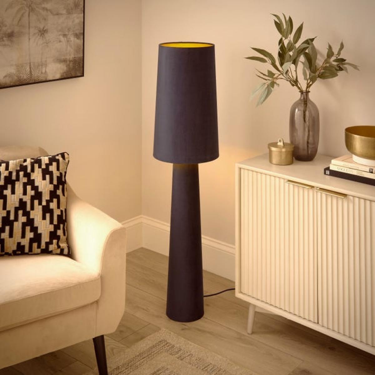 I love this floor lamp for its sleek, modern silhouette and the rich velvet finish, which adds a touch of luxury to any space. It works particularly well in contemporary or minimalist interiors, but can also bring warmth and texture to more eclectic schemes. When styling with this piece, consider pairing it with velvet cushions or textured accessories to create a cohesive look. It’s versatile enough to stand beside a sofa or armchair, and its tall, slim profile means it doesn’t dominate a room while still providing effective ambient lighting. To keep the look balanced, opt for simple, clean-lined furniture and avoid clutter around it, allowing the lamp to be a statement piece without overwhelming the space.