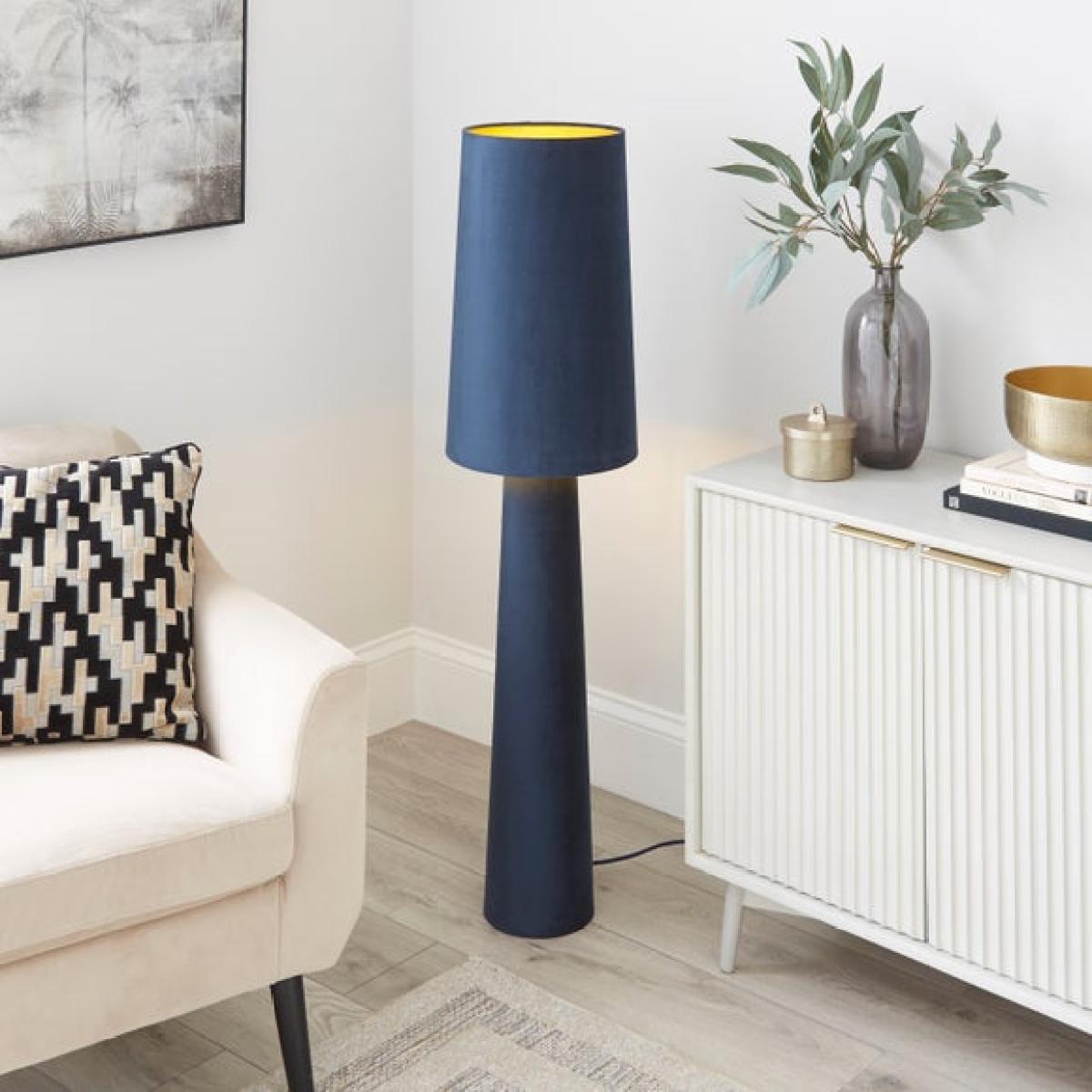 * Velvet Covered Floor Lamp * Gold Coloured Inner Liner * Colour Matched Fabric Flex * Choice of Colours Available * Slim Profile - Great for Smaller Spaces * Modern, Sleek Look * Cap Type: E27 Bulb Slim and stylish, the Nesa Velvet Floor Lamp adds a modern touch to any room. Its fabric covered shade and gold coloured inner liner create a warm, ambient glow. The slim profile makes it ideal for smaller spaces, while the colour-matched fabric flex keeps the look seamless. Designed for E27 bulbs, it offers both form and function, and is available in a choice of colours to suit your style. A sleek option for contemporary interiors.