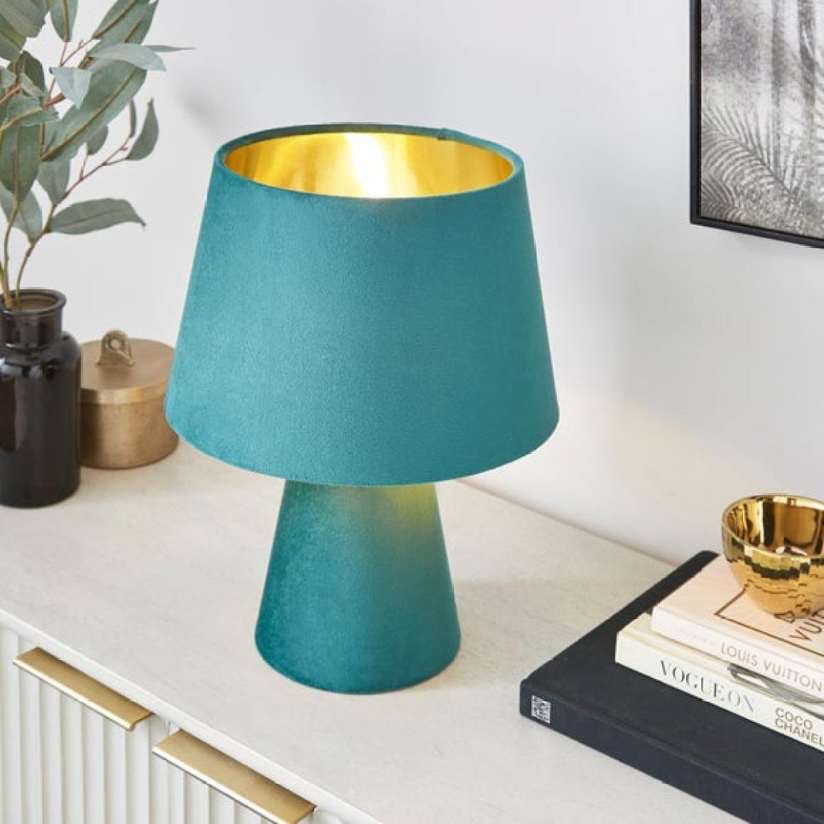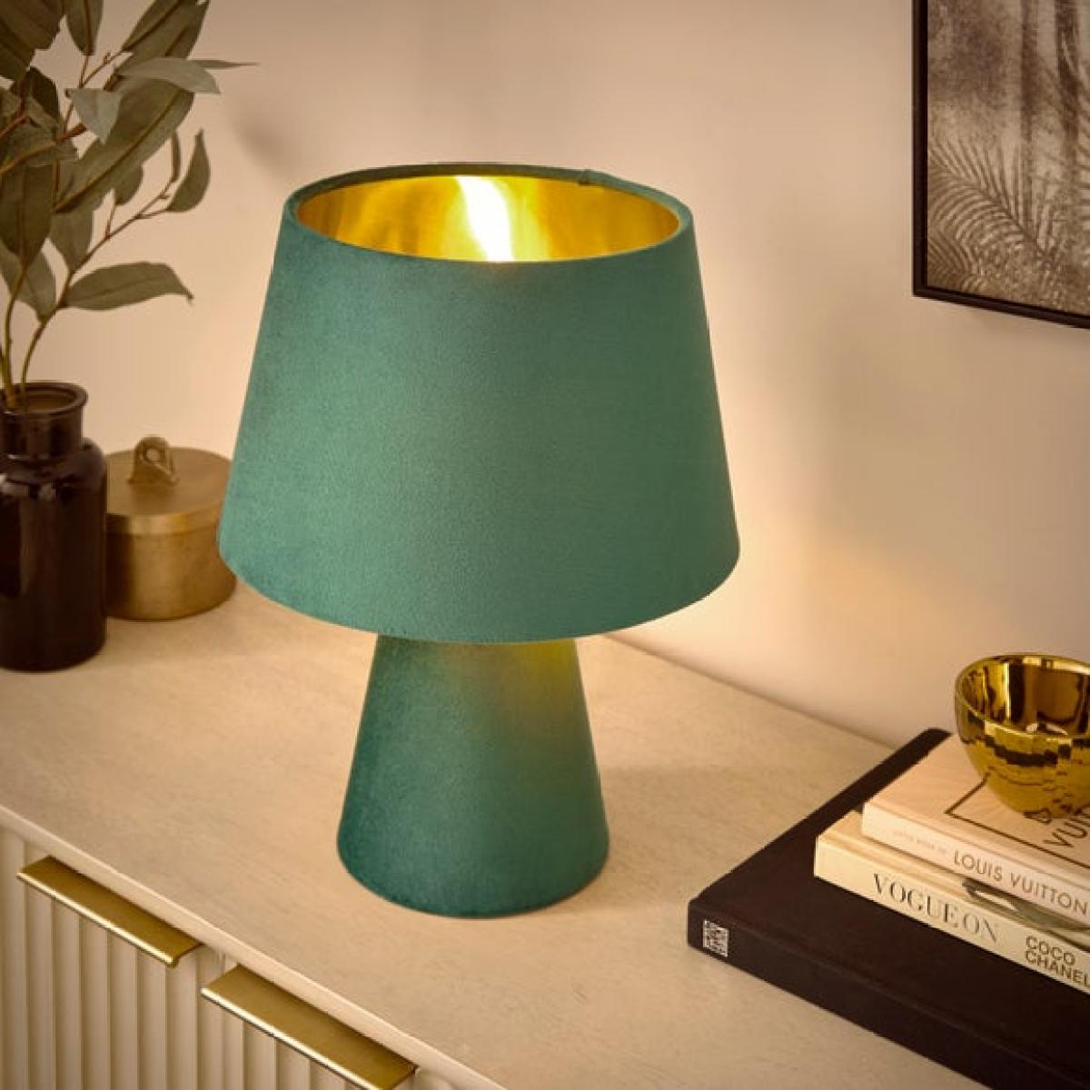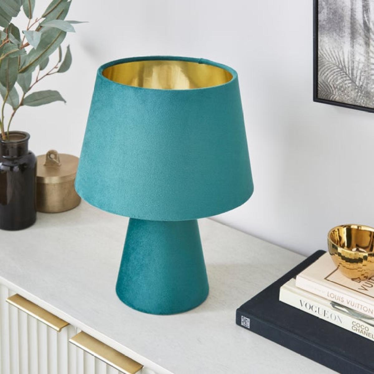 I love the Nesa velvet table lamp for its rich texture and contemporary shape, which can add a touch of sophistication to both modern and eclectic interiors. Its deep green hue pairs beautifully with neutral palettes or contrasting jewel tones, making it versatile for living rooms, bedrooms, or even home offices. For practical styling, consider placing it on a console table or bedside table to create a cosy glow; layering with other soft furnishings like cushions and throws helps to enhance its luxurious vibe. The gold interior adds a subtle touch of glamour, so it works well in spaces with brass or gold accents, adding warmth and elegance to everyday settings.