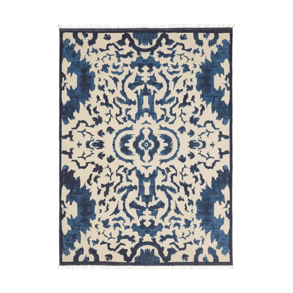 A complex screen printing technique is employed to create the decorative design of our Nesbitt Rug. The effect of this, when combined with the symmetrical pattern, is the sense that you’re gazing into a kaleidoscope. Use this rug to pull a scheme together by echoing the colours found in your home, or make a feature of it by highlighting its contrasts.