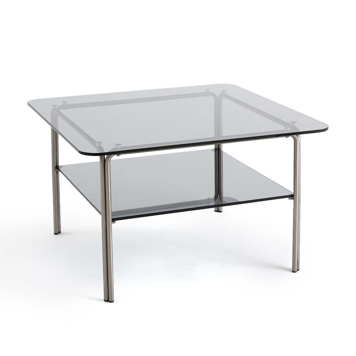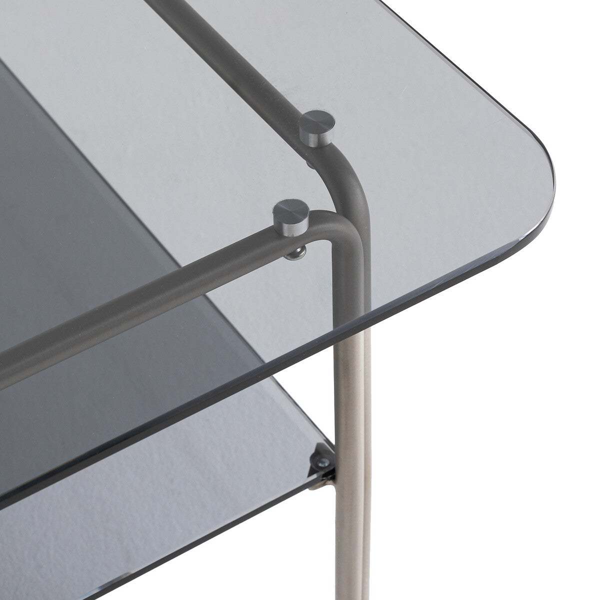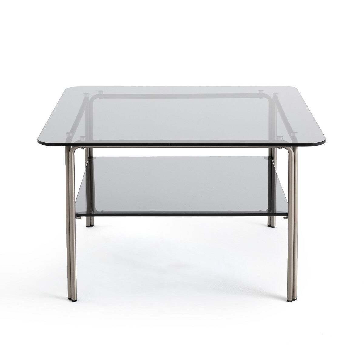 The Neso two-tier coffee table. This tempered glass and steel coffee table has a real '70s influence.