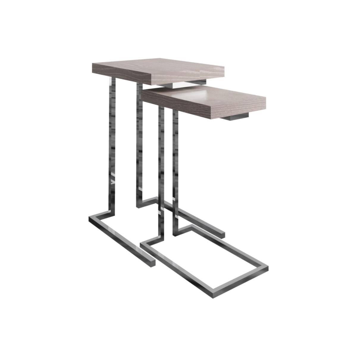 The Arabella sofa tables are sophisticated and contemporary. The pairing of silver grey oak with chrome effect detailing brings light and texture in to the room. The perfect place to rest your drink while relaxing in front of the TV.