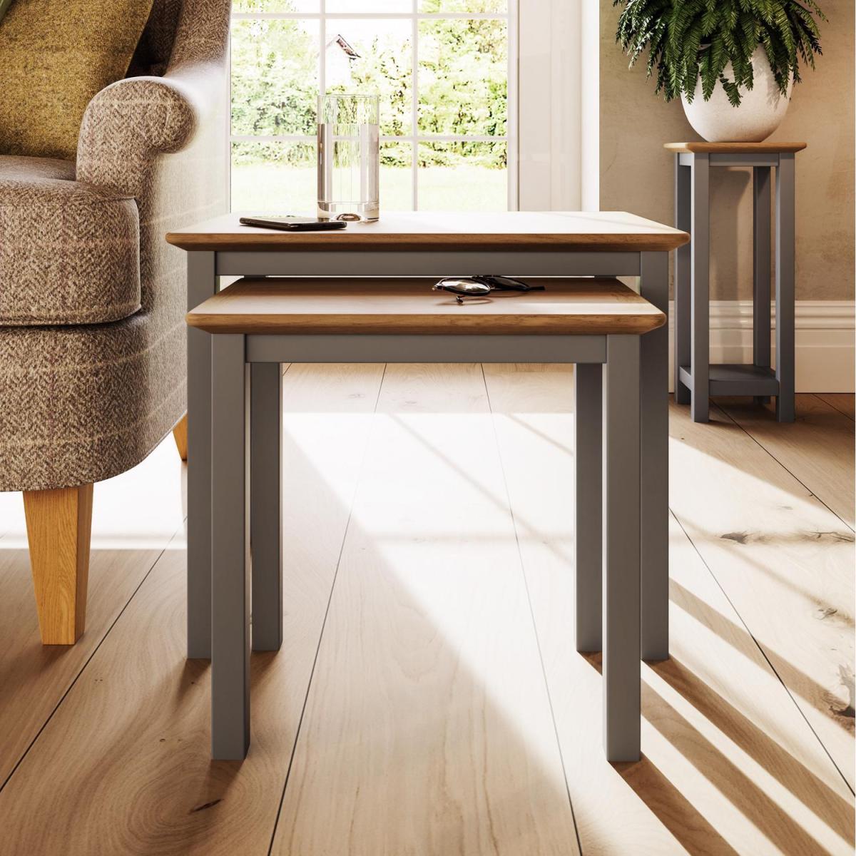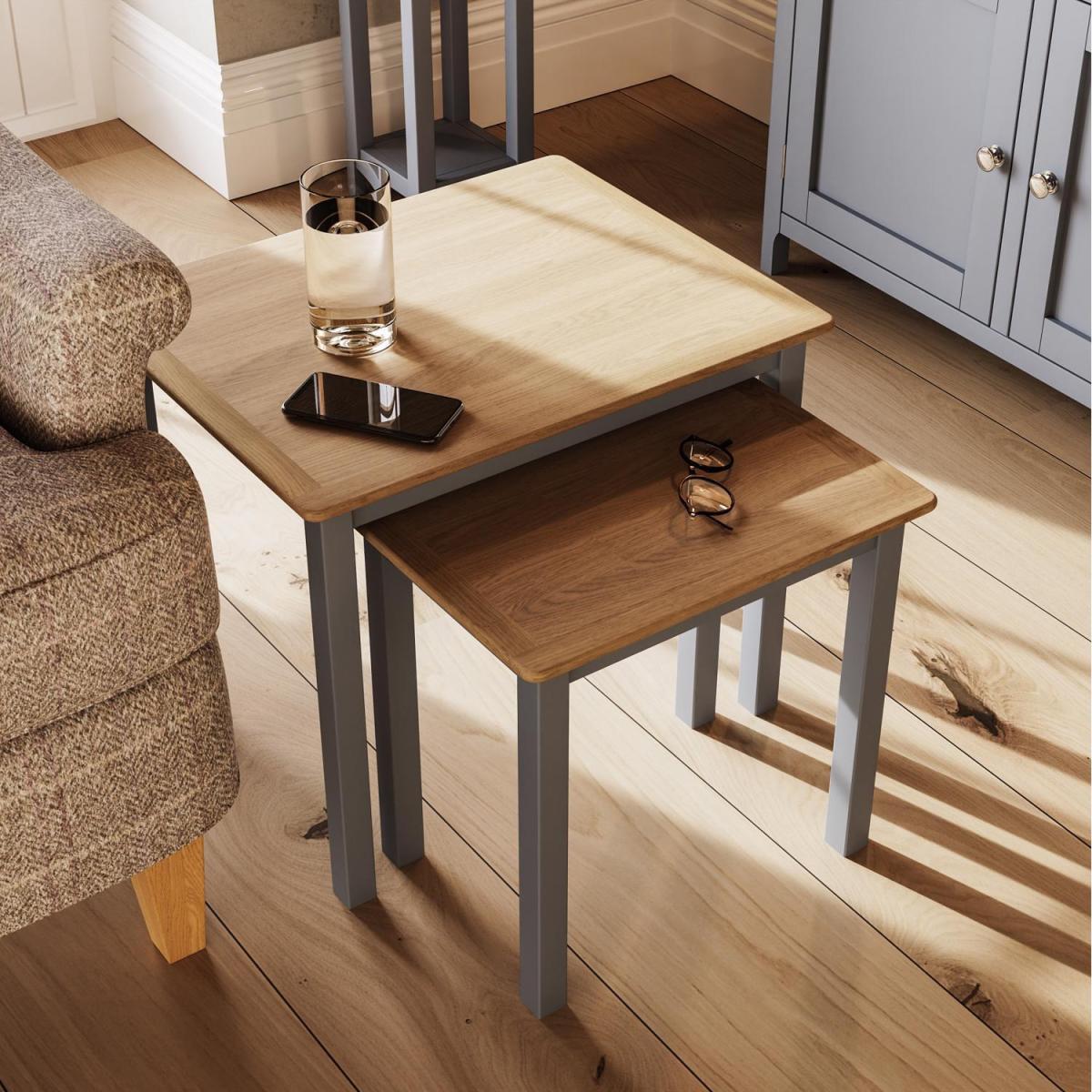 Nest Of 2 Solid Oak Tables Ready Assembled - Grey