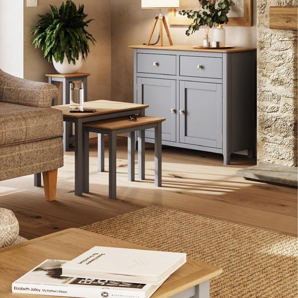 I’m a fan of these grey nesting tables because their solid oak tops and clean lines suit everything from Scandi-inspired flats to more traditional country rooms. The soft grey legs add a modern touch without overpowering neutral schemes, and because they’re ready assembled you can slot them in immediately. For styling, try grouping the larger table with a slim vase or sculptural bowl, then pop a candle or stack of coasters on the smaller one. They make ideal laptop or coffee tables, and you can tuck the smaller table away when you need floor space - perfect for busy living areas or snug corners.