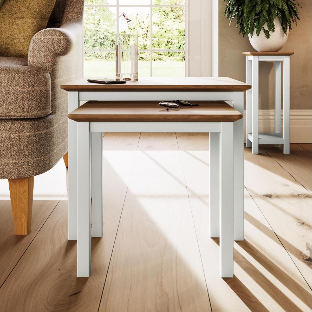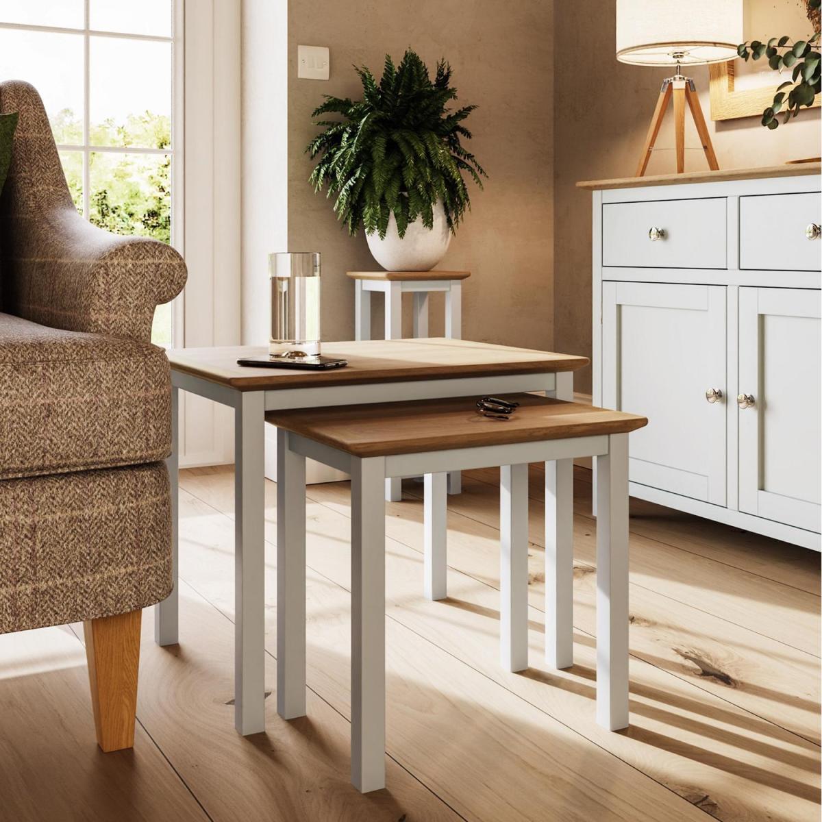 Nest Of 2 Solid Oak Tables Ready Assembled - Linen