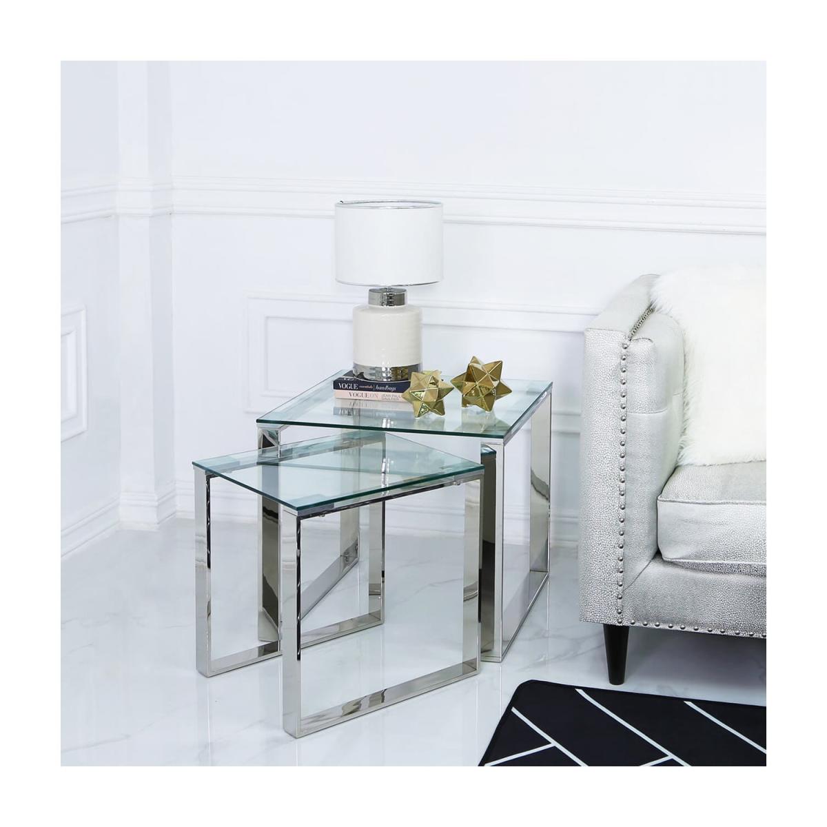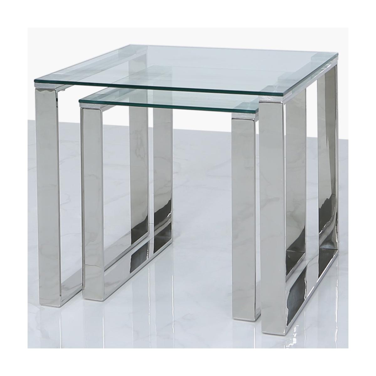 Nest of 2 Tables in Stainless Steel with Glass Top