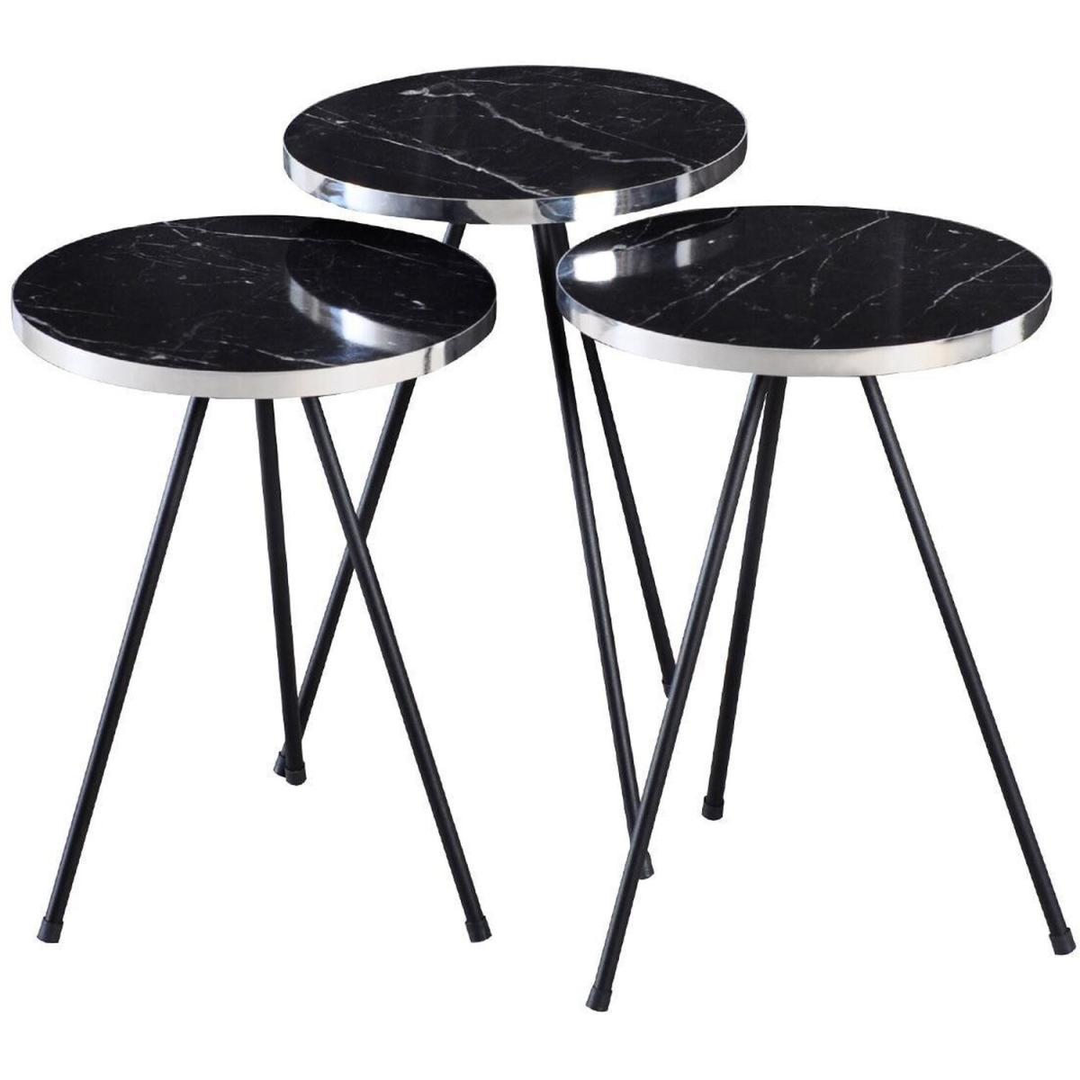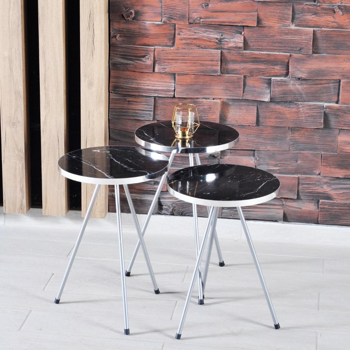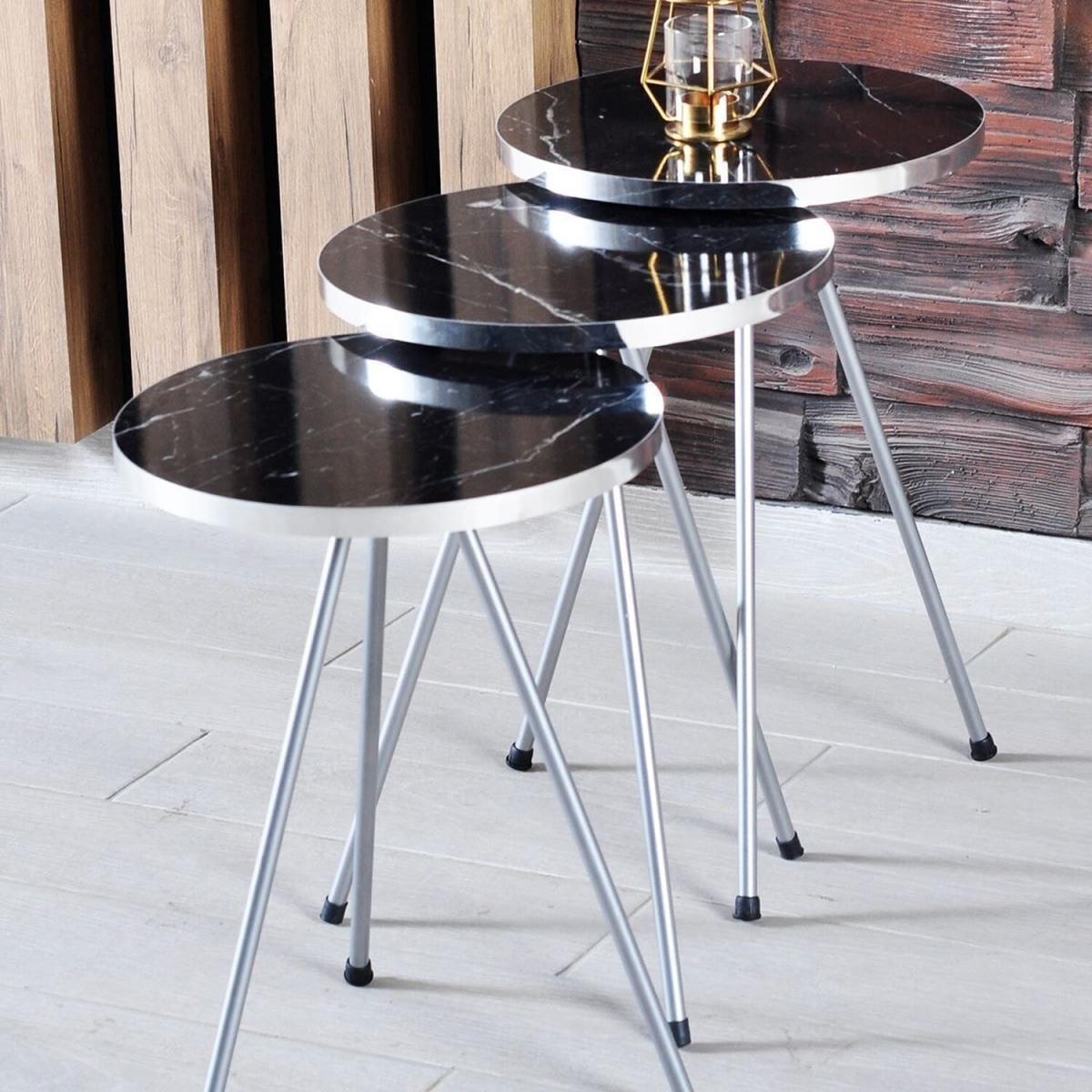 High-Quality Particleboard Nesting tables. Space-saving design: The set includes 3 nesting tables which are ideal for using separately or stacked together on different occasions. However, the small table can also fit neatly under the larger table for easy storage, making this a great furniture set for a small space. They can also be used as bedside tables, side tables, end tables, round coffee tables, telephone tables or nightstands making them a versatile living room furniture set. Round design can be placed in corners to save space. Easy to clean and Assemble:Quick and easy to assemble, just screw the legs to the table tops, all you need is a screwdriver. Can be used as a set or split up and placed individually. Made with Laminated Particleboard and metal legs looks elegant and durable. Multi-purpose End Table:Compact size, space-saving and lightweight design, this set of end tables is easy to move. Rounded edge design can prevent potential damage and injuries.