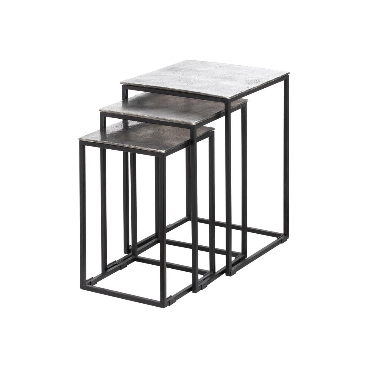 These silver textured side tables are designed with versatility of use in mind. Featuring a textured surface and hand cast in aluminium. The table is hardwearing yet light enough to move around your home and it's contrasting black legs make it perfect for a modern contemporary interior.