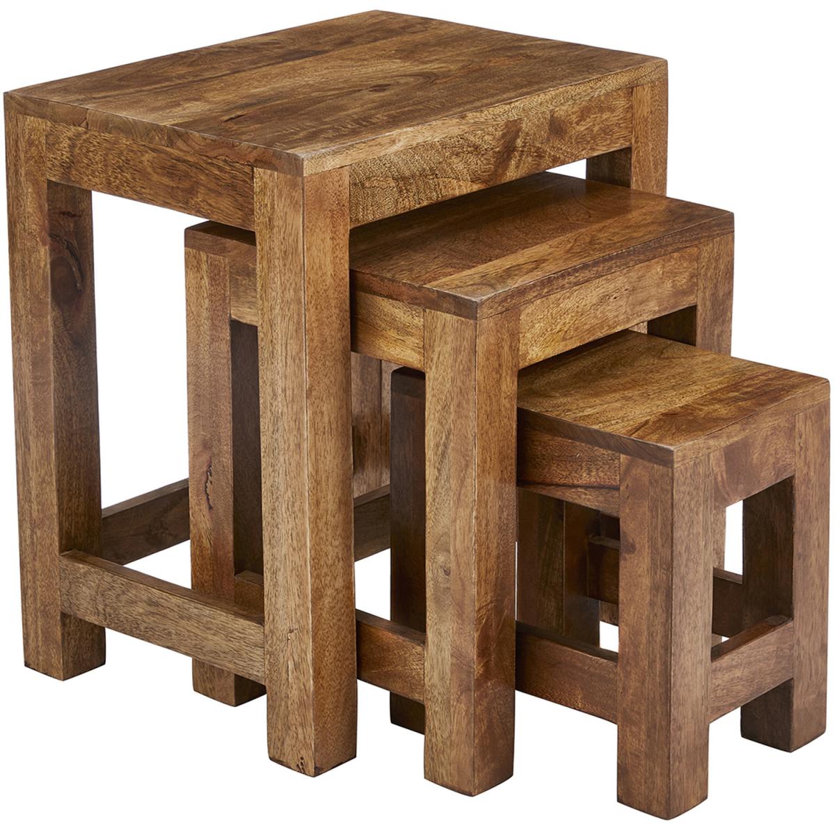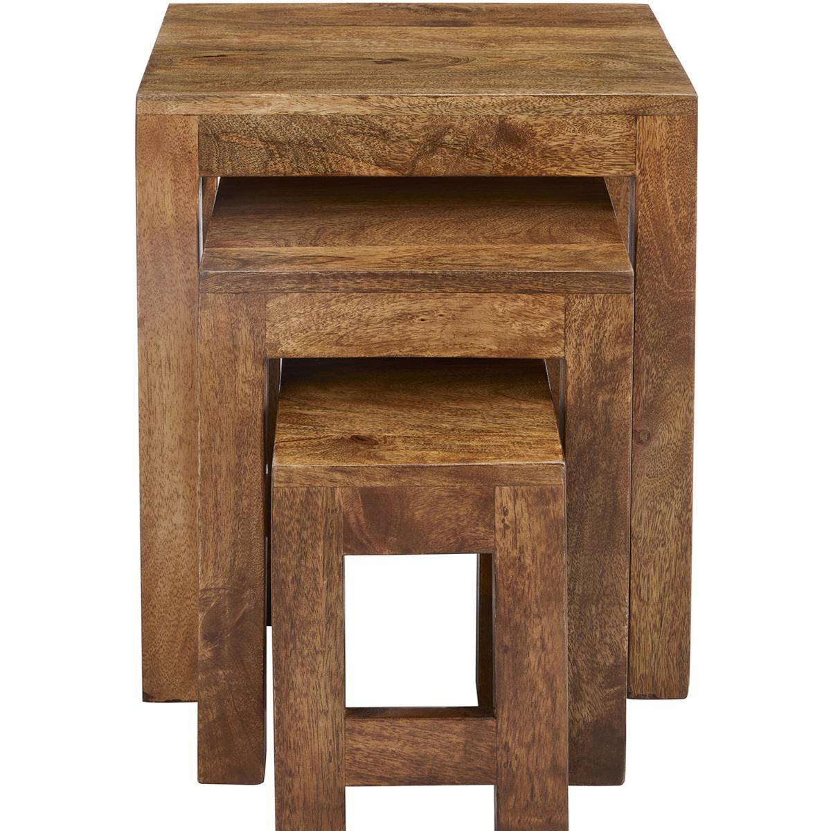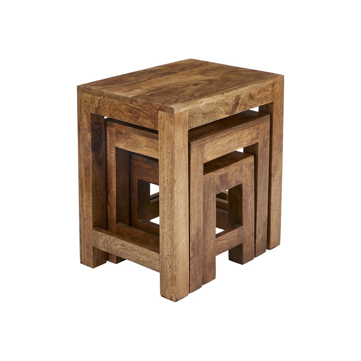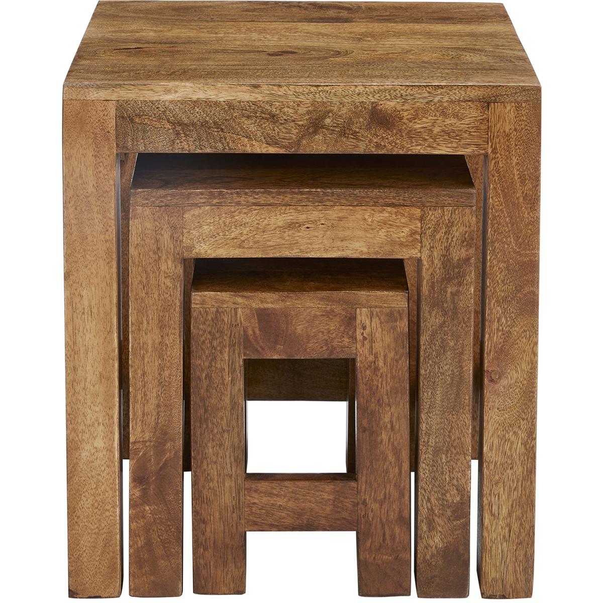 Nest of 3 Solid Light Brown Wood Tables - Dark Brown
