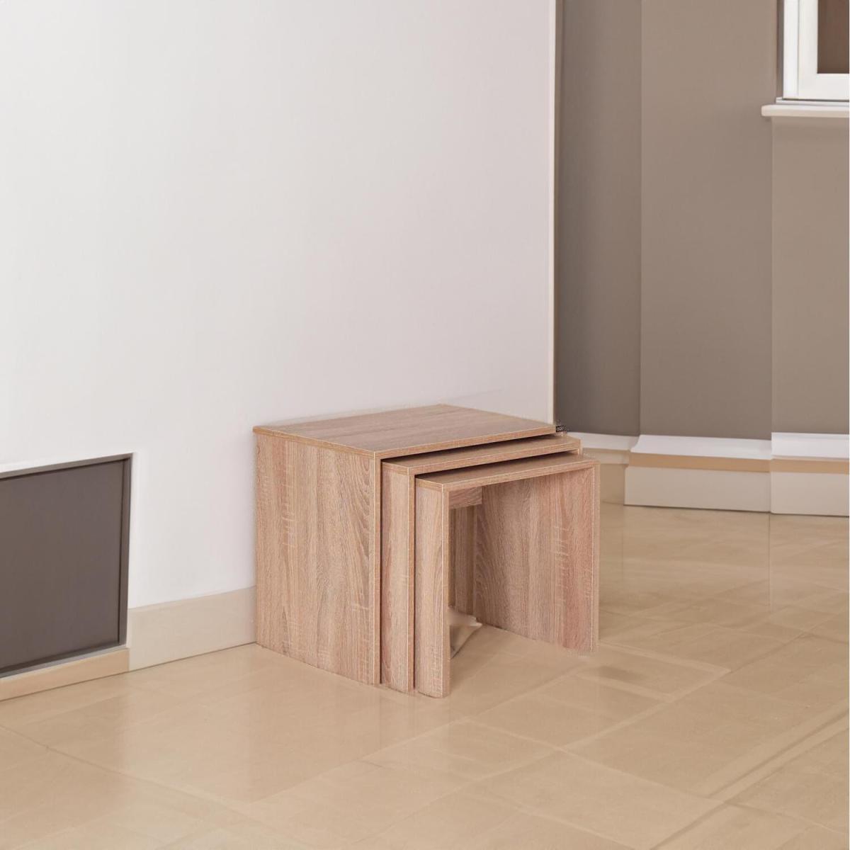 Introducing the FWStyle Nest of 3 Sonoma Oak Tables, a versatile and stylish addition to your living space. This set of nested tables not only offers functionality but also showcases a beautiful Sonoma Oak finish that seamlessly blends with various home decor styles. Crafted with durability in mind, these tables feature a scratch-resistant surface, ensuring they maintain their pristine appearance even with everyday use. The scratch-resistant coating provides peace of mind, allowing you to enjoy these tables for years to come without worrying about unsightly marks or damage.