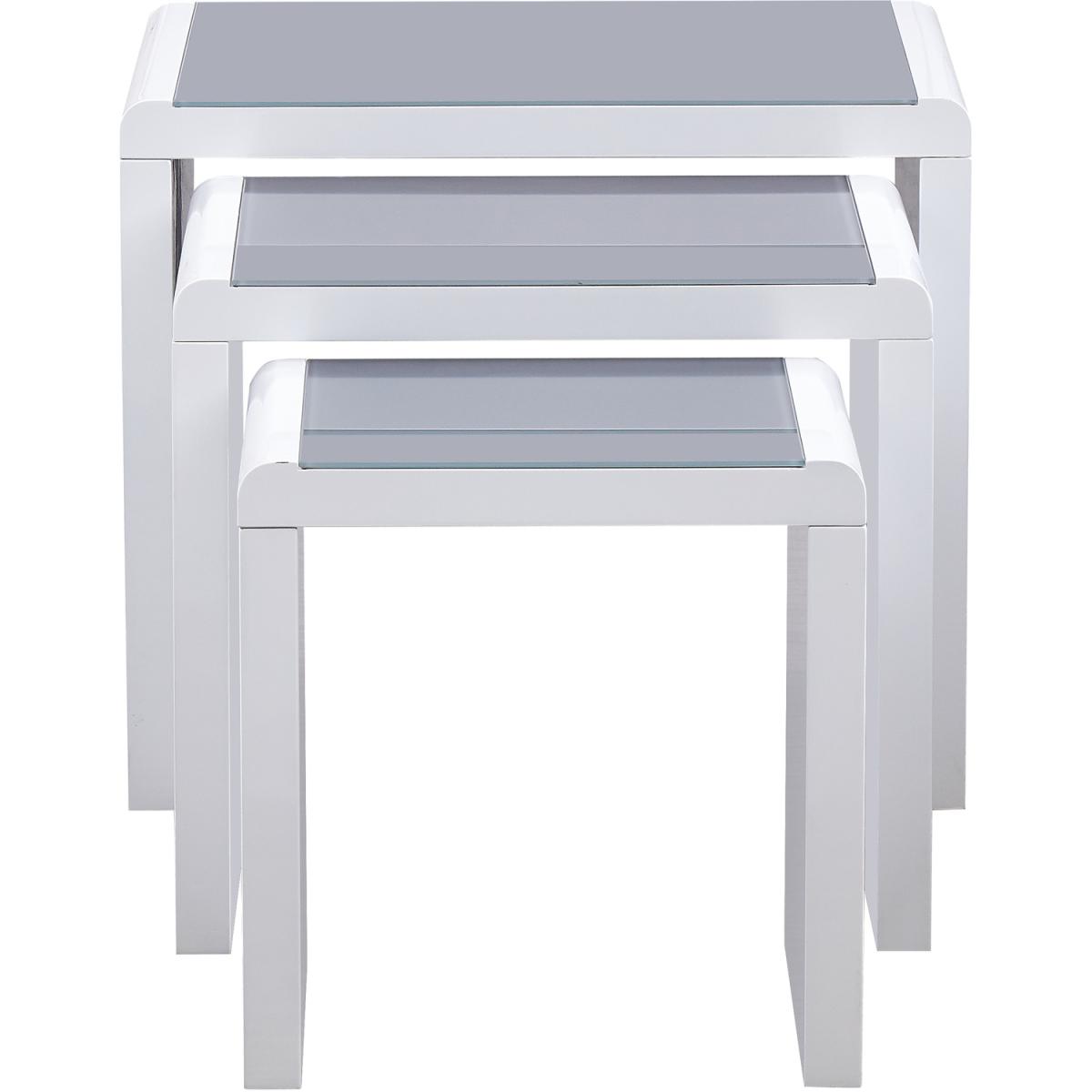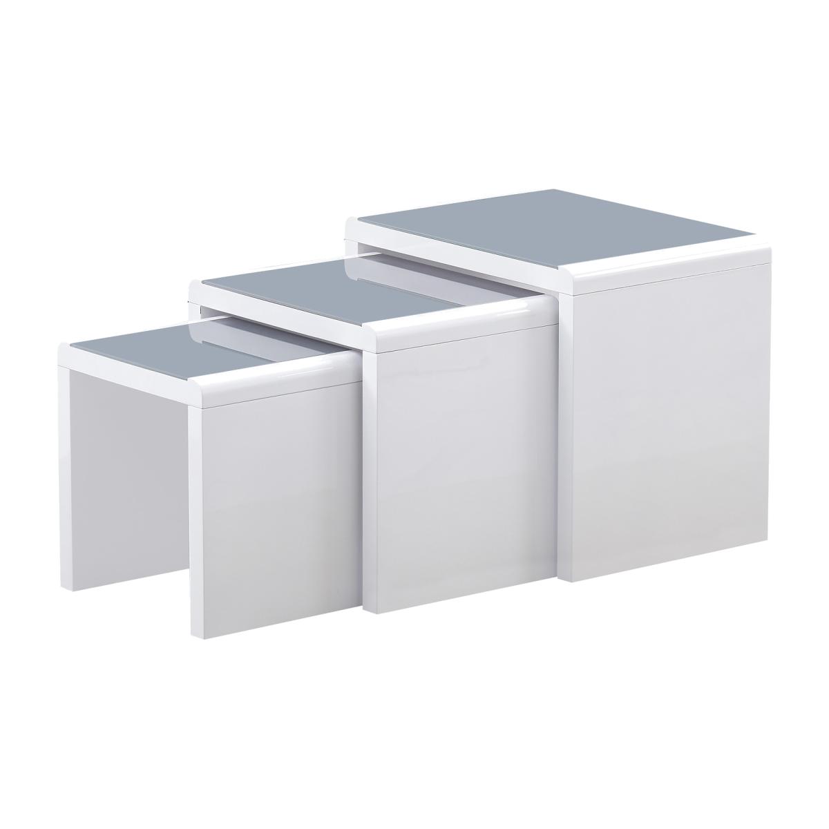 Nest of 3 Tables High Gloss White Finish with Grey Tempered Glass Top - Grey