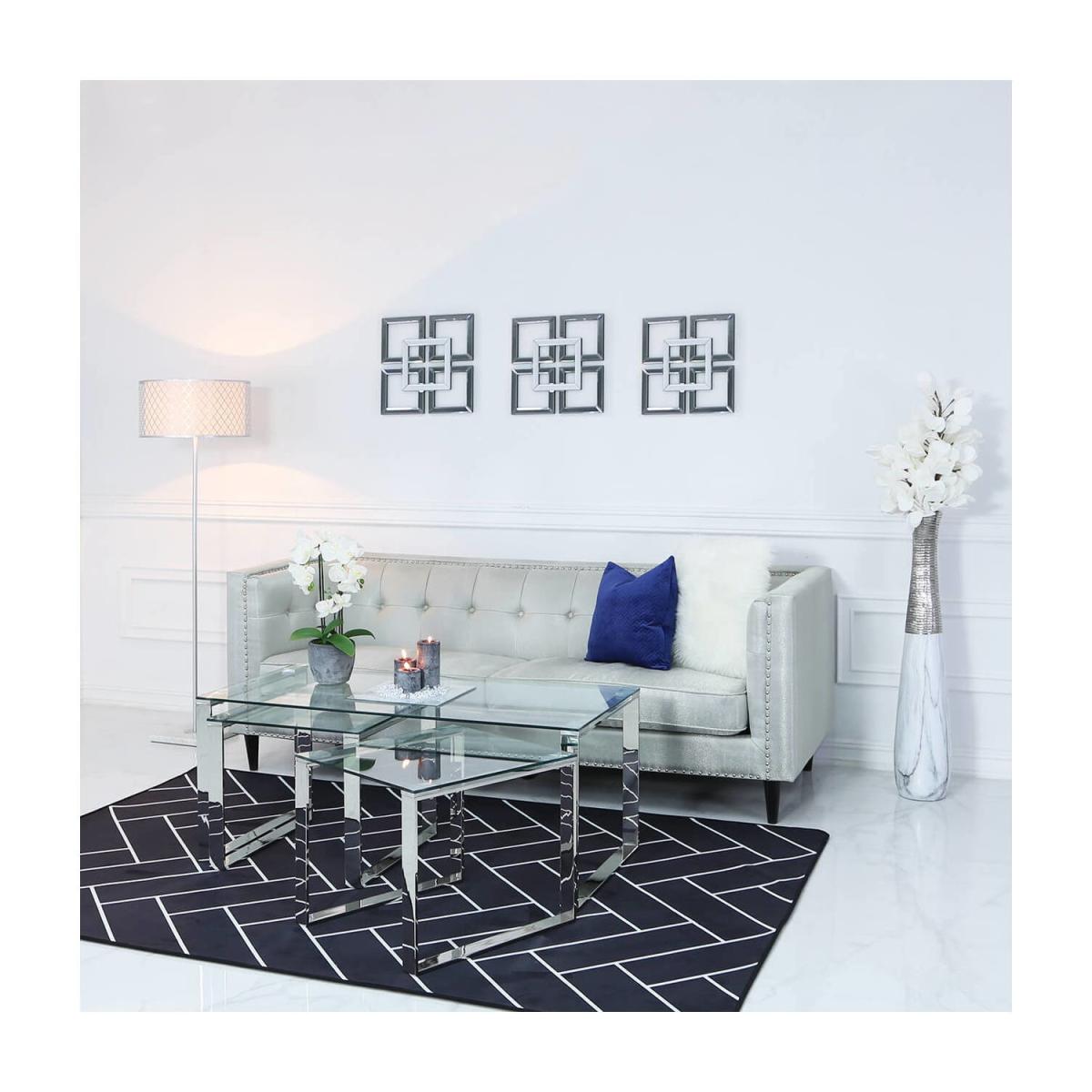 This nest of tables is a great choice for adding a sleek, contemporary touch to any living space. I love its minimalist design and the combination of stainless steel with glass, which creates an elegant yet versatile look. It works particularly well in modern or industrial interiors, but can also add a sophisticated edge to more eclectic rooms. For styling, try layering them over a textured rug or pairing with metallic and glass accessories for a cohesive look. They're perfect for practical use - easily pulled out for extra surface space when entertaining or positioned apart to create varied visual interest. This set is a smart and stylish solution for those who want flexibility without compromising on a clean, polished aesthetic.