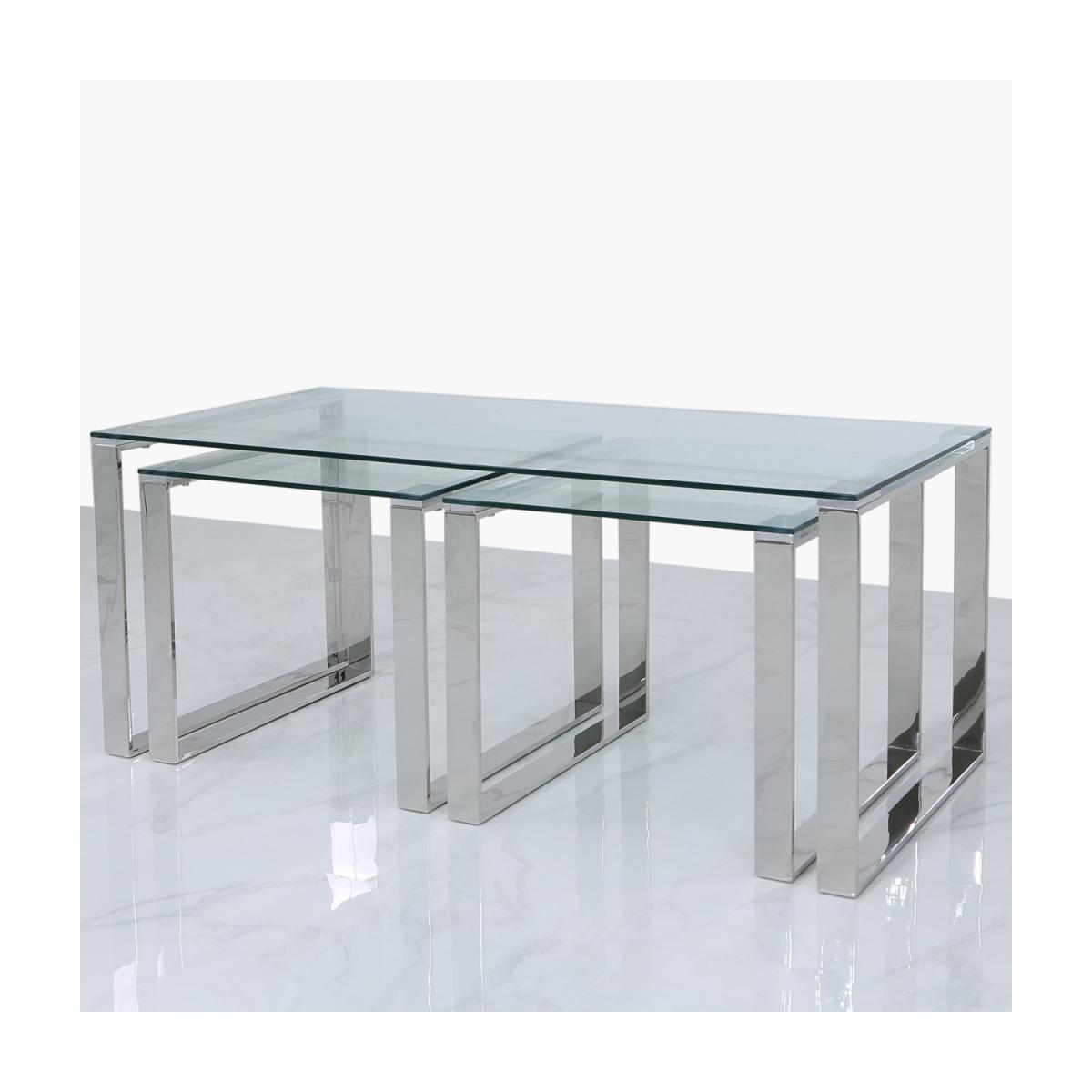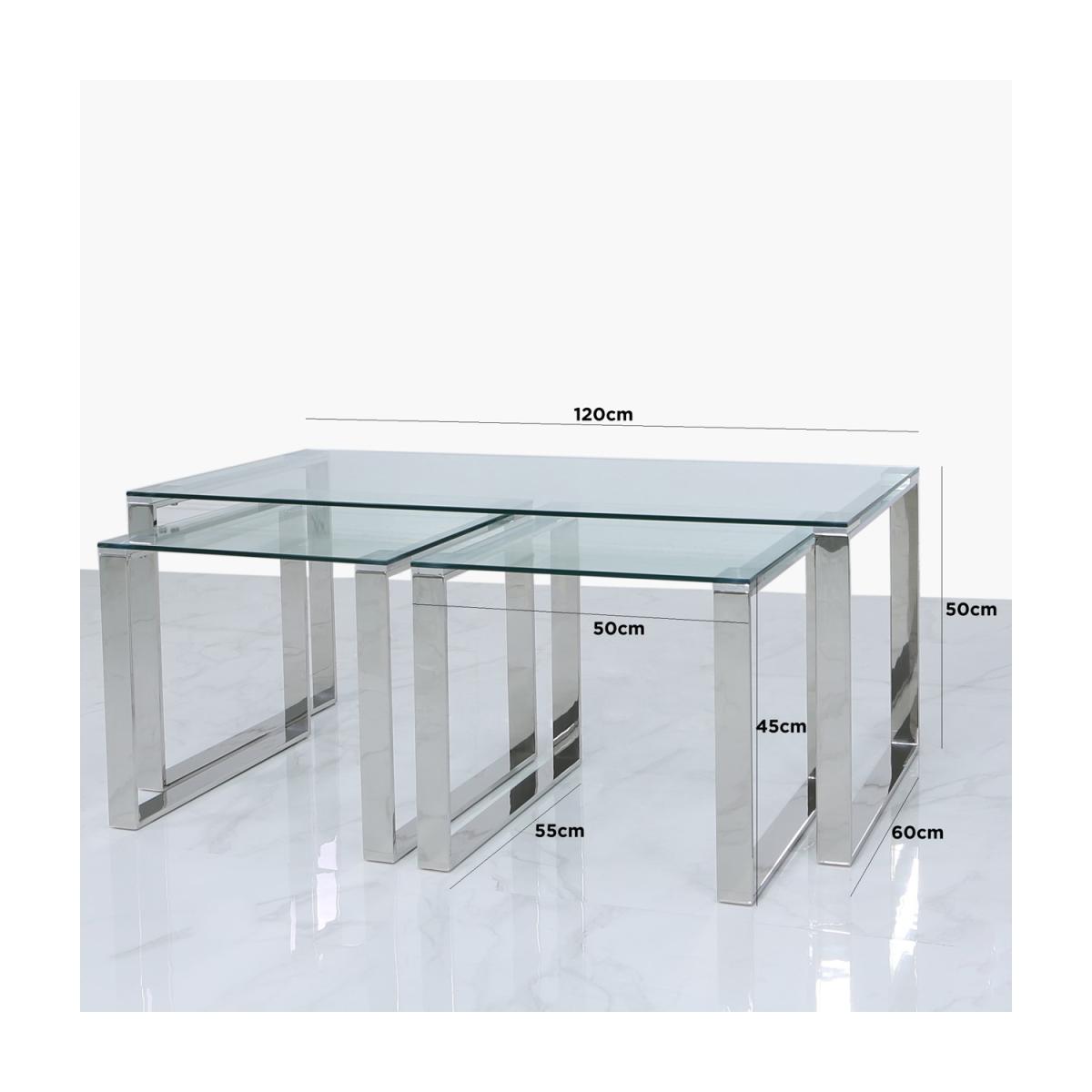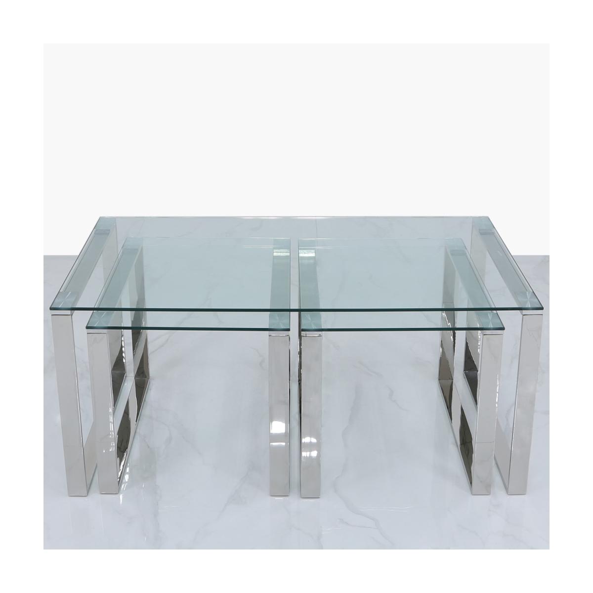 Nest of 3 Tables in Stainless Steel with Glass Top