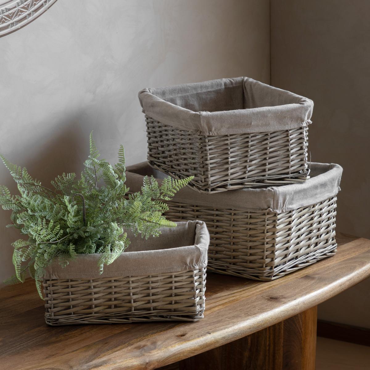 Nesta Square Lined Basket in Grey, Set of 2