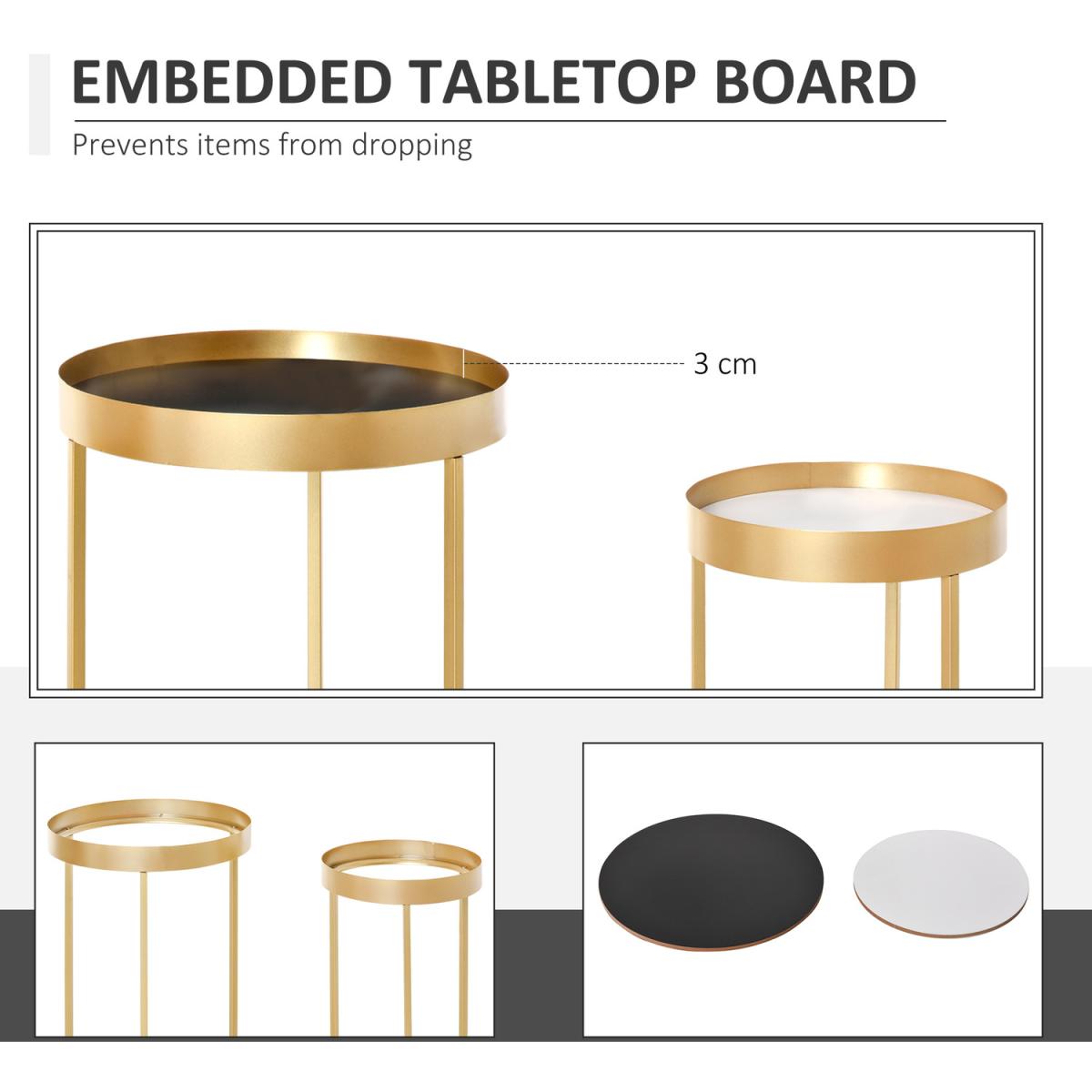 Enjoy this beautiful coffee table set from HOMCOM during your chat party or afternoon tea! The simple and fashionable design with golden metal base and tabletop in marble colour gives you an unforgettable visual enjoyment. Made of MDF board and metal, durable for prolonged use and easy to clean. When not in use, it is stackable for space-saving. A functional and stylish table set adds simple happiness to your home!