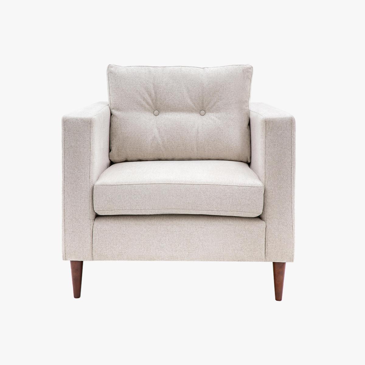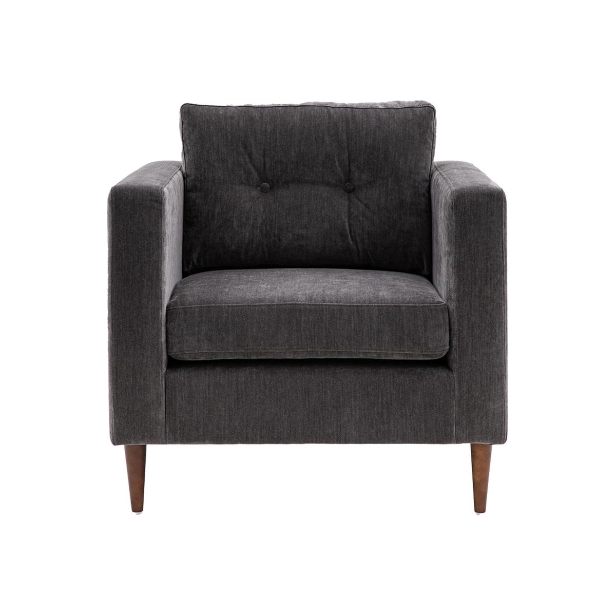 I’m a fan of the Nestler chair for its crisp, box-frame silhouette and deep charcoal upholstery - it brings instant structure to Scandi, mid-century or urban-industrial schemes. The slim, walnut-tone legs lift the look, so it sits equally well on wooden floors, tiled spaces or layered rugs. Practical styling tip: pair it with a slimline side table and tall floor lamp for a neat reading nook, then soften the edges with a light linen cushion or small sheepskin throw. Its hard-wearing fabric is easy to spot-clean, making this chair a solid choice for busy living rooms or snug corners.